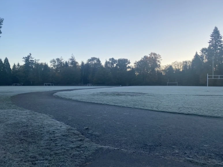 캐나다에서 유일하게 온화한 날씨를 가진 BC주, 그것도 광역밴쿠버 지역인데 10월 말의 날씨가 초겨울 같습니다. 해뜨기 전후가 가장 추운데 딱 우리의 산책 시간입니다. 며칠 동안 아침 최저기온이 1도 근처를 머물더니 기어이 빙점을 기록하네요. 아직 꺼내놓지 않았던 긴 패딩을 찾아입고, 장갑까지 끼고 집을 나섭니다. 아직 해는 떠오르지 않아 달을 보며 걷는 길, 보름 근처인가 봐요. 둥근 새벽달이 참 예쁩니다.