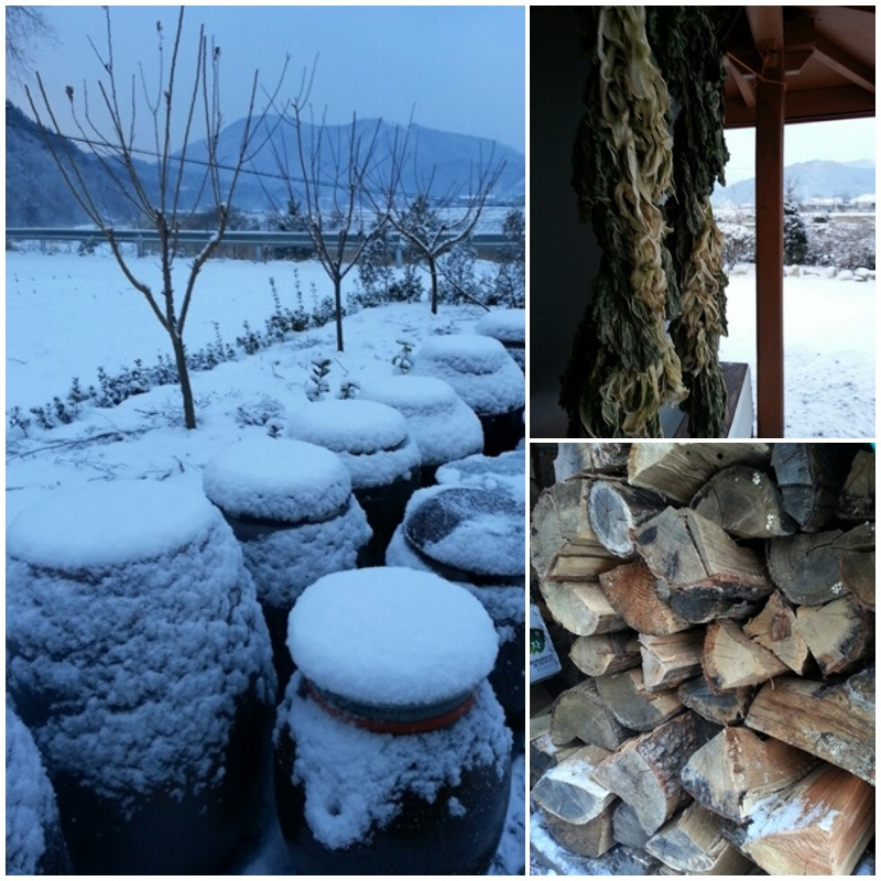 밖에는 눈이 푹푹 쌓이고 아침마다, 시장에서 산 털신을 신고 밭이 끝나는 곳에 있는 닭장으로 가서 두근두근 달걀을 꺼내고 달걀 프라이를 하면 노른자가 유난히 봉긋해서 신기했고 식탁 위에 소복하게 담겨있는 달콤한 귤과 먹어도 먹어도 질리지 않던 수리취떡을 실컷 먹으며,