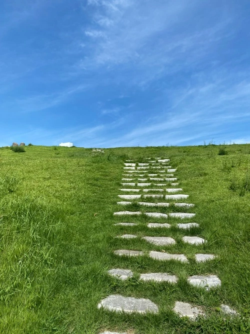 아마도 이 계단때문이었을 것이다, 뜨거운 여름 햇살이 소나기처럼 쏟아지는데 우산, 아니 양산도 없고 그늘 한 군데 없는 저 언덕을 오를 생각을 한 것은. 잘 자란 여름풀을 눕히고 자장가라도 부르듯 놓여있는 돌계단은 너무나 다정하고 예뻐서 오늘은 이 계단을 만난 것만으로도 할 일을 다한 기분마저 들었다.