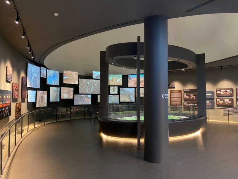 전시관은 전체적으로 원형으로 구성되어 있는데 각각 도입의 장, 개관의 장, 고분의 장, 교류의 장, 문화의 장으로 공간이 나뉘어 있어서 왼쪽으로 들어가서 원을 그리며 오른쪽으로 나오는 구조다. 정면에 위치한 도입의 장은 관람객의 전시 관람을 돕기 위한 정보 검색 및 안내·휴게·체험의 공간으로, 박물관 전시자료 검색기와 3D 영상을 관람할 수 있는 이미지 월(image wall), 작은 도서관 등이 있다.