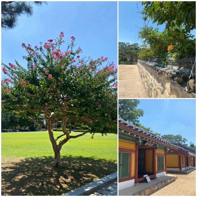 들어올땐 못 봤는데 다른 방향으로 나가다가 만난 입구 쪽에 있는 배롱나무 한 그루, 배롱나무를 좋아해선지 반가웠다. 수형이 아담하고 다정하다. 그리고 옆에는 긴 흙담이 있는데, 이 담을 타고 능소화가 흐드러진 유월이면 사람들이 일부러 찾아오는 포토존이라고 한다. 이제 꽃은 몇 송이 남지 않았다.