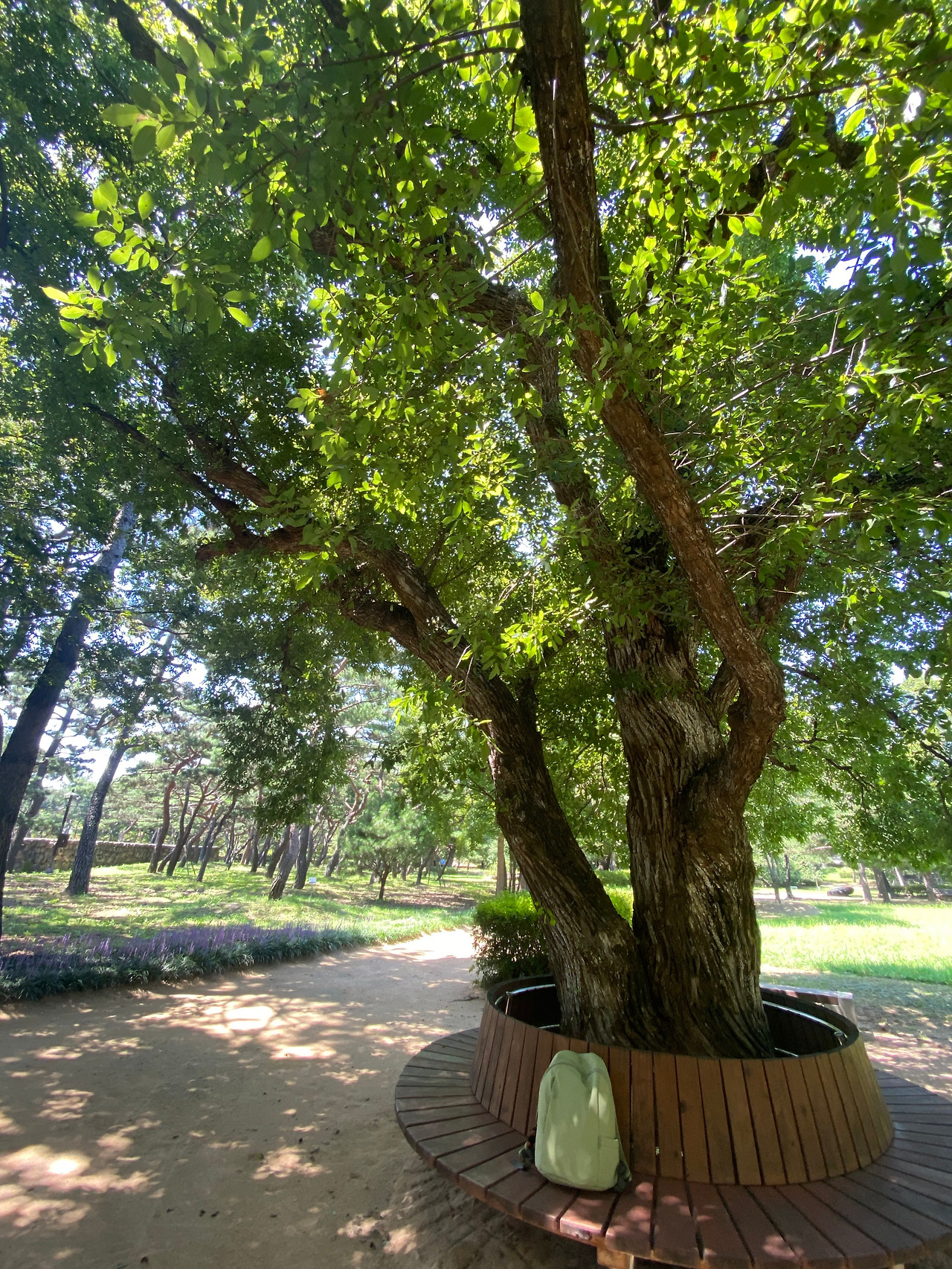 좀 오래 머물며 풍경의 일부가 되고 싶었는데 고맙게도 큰 정자나무가 있었다. 디딤돌처럼 동그랗게 놓여있는 나무의자가 편했다. 아마 누군가 여기쯤에 쉴 곳을 만들자고 한 사람도 지금 내가 보고 감탄하는 풍경을 사랑했을 것이다. 백팩을 내려놓고 앉아서 물을 조금 마시고 커피 사탕을 한 알 입에 넣고 자질구레한 생각의 끈도 풀고 오래도록 풍경을 바라본다. '쉼'이 '숨'이 되는 순간이다. 언젠가 오늘을 떠올린다면 가장 먼저 이 순간이 그리울 것이다. 여행이 굳이 멋진 건물이나 경치를 보고 특별한 음식을 먹고 일상적이지 않은 경험이어야 할 필요는 없다. 그 모든 화려하고 소란스러운 것들의 구석에서 나 홀로 만난 한 순간에 오래도록 머물러 있을 때, 여행은 비로소 의미를 갖는다.