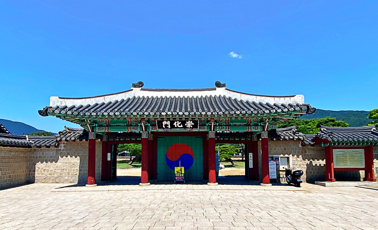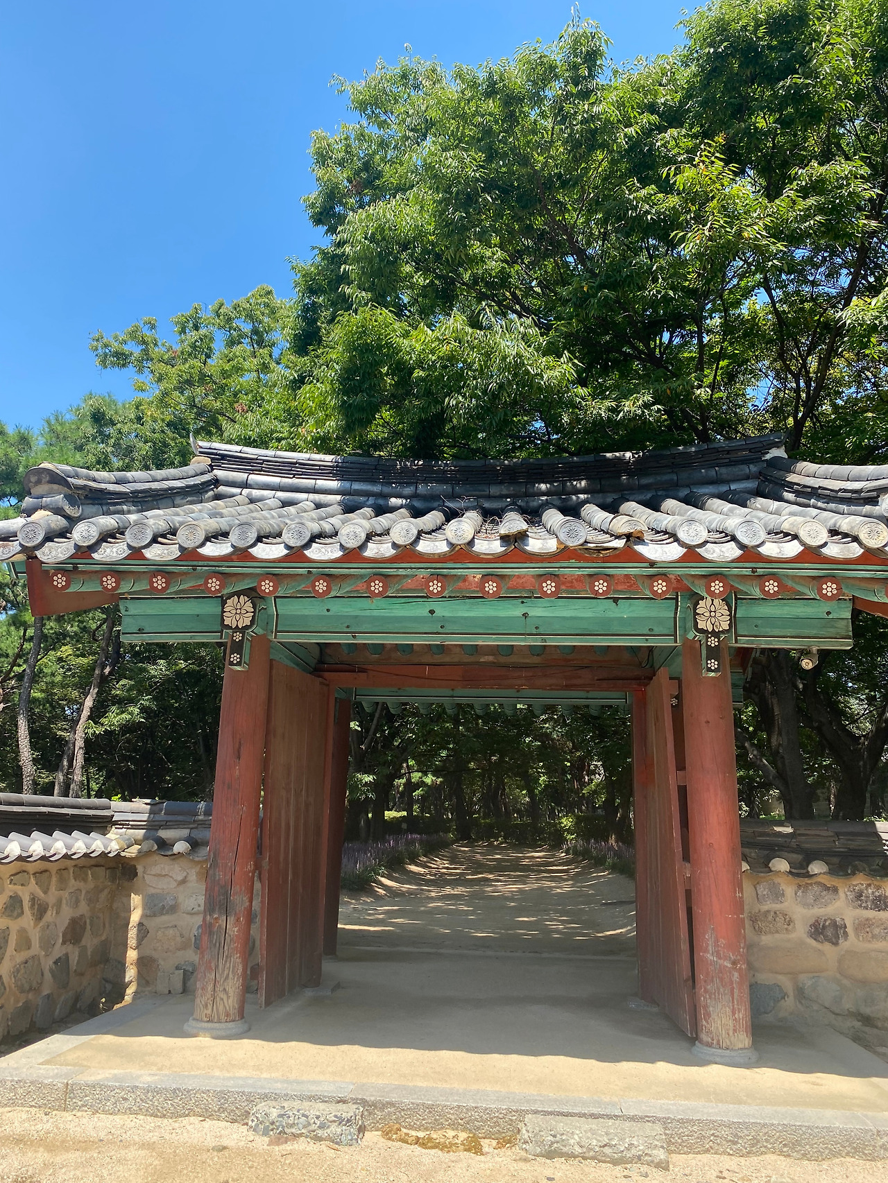 사실 햇살이 너무 쨍해서 사진을 제대로 찍지 못했다. 그래도 능 주변은 다 둘러본 것 같아서 나가려다 왼쪽 멀리 별채 같은 노란 벽의 건물들을 보았다. 조금 망설이다가 갔더니 매년 제례를 지낼 때 쓰는 제기나 음식물들을 보관하는 부족 건물이었다. 더운데 그냥 나갈걸 그랬다고 후회를 하는 순간, -왜 있잖은가. 무엇인지 확실히는 모르겠지만 뭔가 끌어당기는 기분, 그래서 다시 고개를 돌리고 유심히 보게 되는-그리 멀지 않은 곳에 낡은 솟을대문이 보였다.
