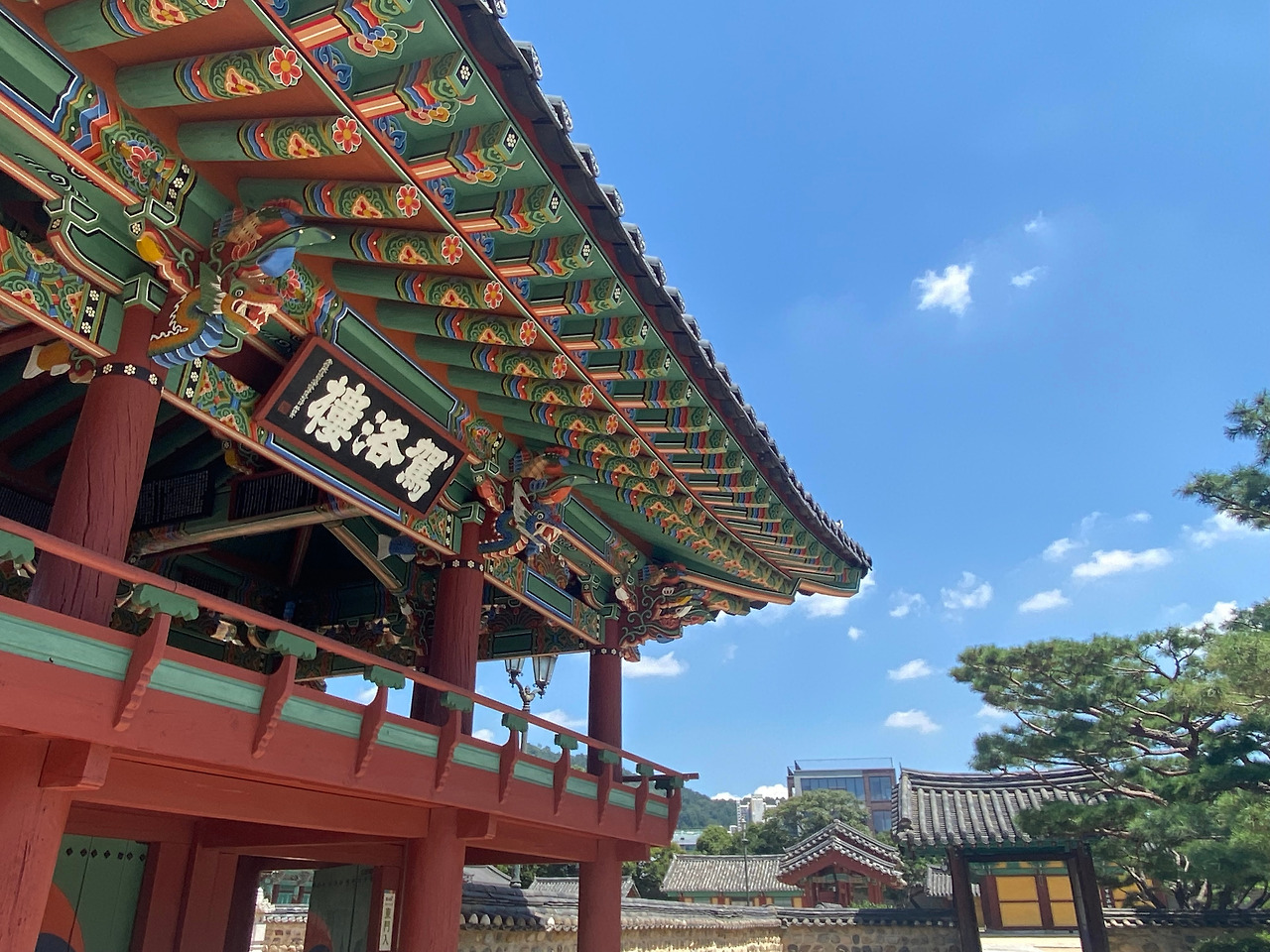 보색에 가까운 하늘과 단청의 대비는 모든 것을 더욱 선명하고 비현실적으로 만든다. 햇살이 뜨거운 만큼 풍경은 돋보이지만 양산을 쓰고 지나가는 사람을 부러워하며 가방에서 썬그래스를 꺼내다가 문득, 먼 옛날 새댁일 때 썼던 흰색에 가까운 연한 하늘색 레이스 양산이 떠올랐다. 마치 지금 집으로 되돌아가면 신발을 신느라 내려놓았다가 깜빡 잊고 나온 그 양산이 현관에 그대로 놓여있을 것 같다. 환각처럼 기억이 뒤섞이는 건 햇볕 때문일까? 이곳은 어디선가 멈춘, 잃은, 혹은 잊은 시간 같다.