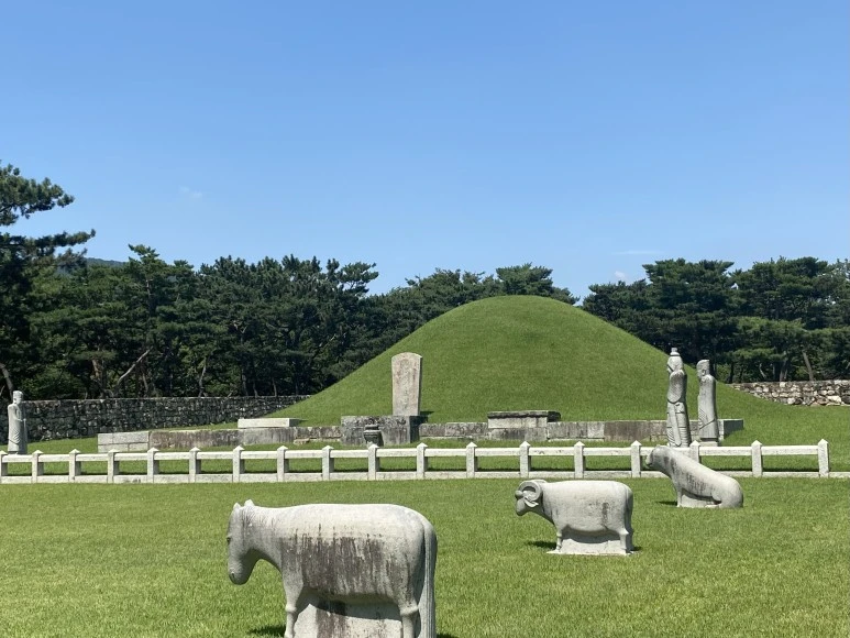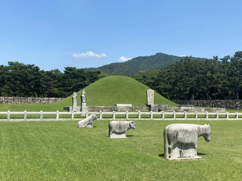 맥문동 잔꽃잎마다 다정하게 스미던 햇살이, 나무 그림자를 딛고 걸어가 닿은, 우아한 왕릉의 뒷모습에 나는 감탄한다. 문득 모든 것이 멈춘다. 오늘 여행의 정점같은 순간이다.