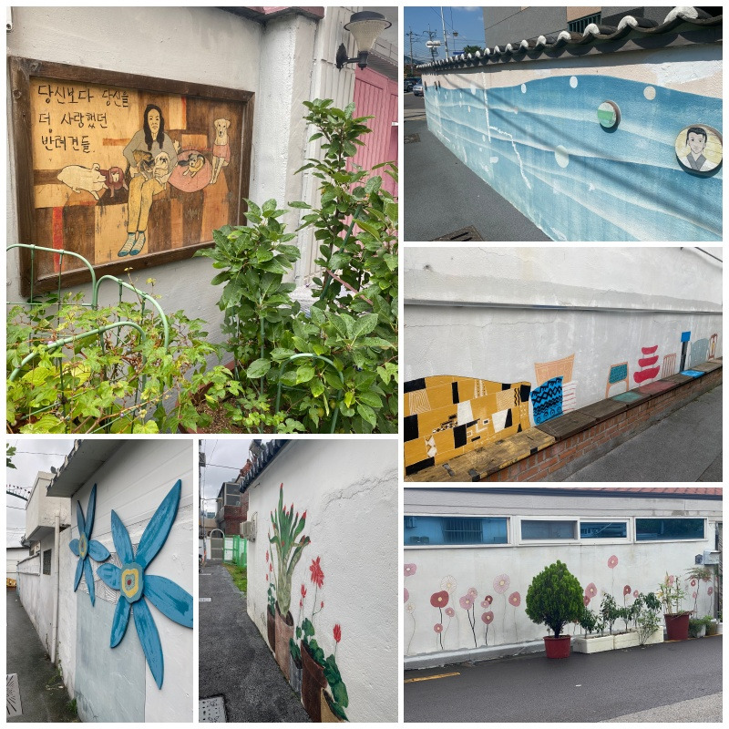 패총전시관을 나와 조금 내려오자마자 바로 벽화가 보이길래 가끔 찾아오는 방향치의 행운인 줄 알았더니 혹시나.. 는 역시나..로 금세 전환됩니다. 이 정도가 다는 아닐 텐데 하는 순간 벽화는 끝났고 길을 잃었습니다. 한참을 걷다 보니 시장이 나왔는데 상인들께 물어봐도 모르시고 심지어 뭔 이렇게 쓸데없는 것을 묻고 다니냐는 표정이십니다. 어느 할머님은 '인터넷 찾아봐!' 하십니다. 뜻밖의 대답에 반사적으로 아, 네.. 하며 돌아서며 갑자기 어리어리한 이방인이 된 것 같아 쑥스럽기도 해서 풋, 웃음이 났습니다. 어느 특정한 건물 같은 게 아니라서 지도로는 못 찾아서 여쭤본 건데... 네~ 좀 더 헤매보겠습니다.