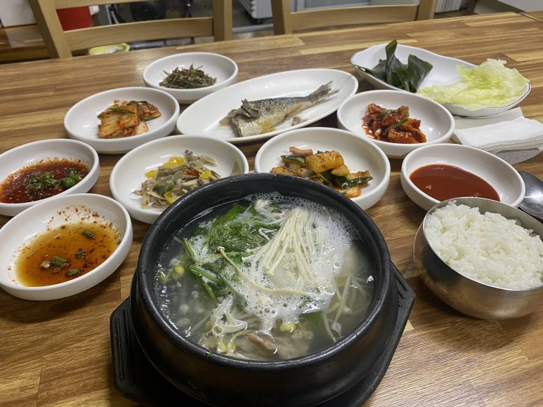 처음 먹어보는 복국에 대한 기대도 있었지만 특히 반찬이 맛있고 청어 구이도 한 마리 나온다고 미리 좋아했는데 예상보다는 허술했습니다. 아마 일 인분이라 그랬던 것 같아요. 반찬의 구색도 사진으로 본 밥상과는 좀 다르게 부실한 것 같고 청어 구이는 머리도 없이 거의 반토막이고 (2인분에 한 마리였나 봅니다. 이제야 깨닫네요. 괜히 속으로 불평했어요. 이래서 혼자 밥 먹으러 다니기가 쉽지 않습니다.) 물과 물티슈도 나중에 달라고 하니까 가져다주었습니다. 인터넷의 리뷰를 여러 개 봐서 비주얼로 확인한 기대치가 있었는데 조금 실망했습니다. 순간 생각합니다. 역시 인간의 불행은 '비교'에서 오는구나.. 마음을 고쳐 먹다가도 서빙하시는 분의 표정을 보니 제가 장사 뒷설거지가 하는 중에 온 손님이 확실한 것 같아서 미안하기도 하고 좀 불편하기도 했습니다. 그래도 복국은 맛있었어요.