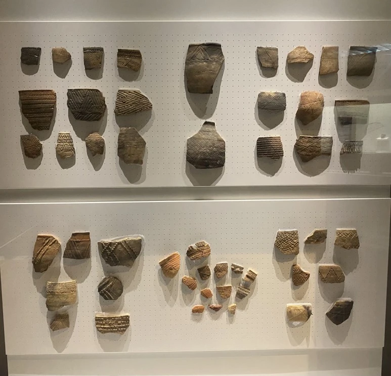 한쪽 벽에는 당시에 사용했던 다양한 문양의 빗살무늬 토기의 조각들이 진열되어 있다. 아마 학교에서 배운 토기의 종류 중에서 가장 많은 사람들이 기억하는 토기가 빗살무늬토기일 것이다. 그래선지 마치 오래전 내가 사용했던 토기의 조각이라도 되는 것처럼 향수까지 느꼈다. 어쩌면 글을 쓸 때 꽤 여러 번, '패총'이나 '빗살무늬'를 은유로 사용했기 때문일 수도 있다.