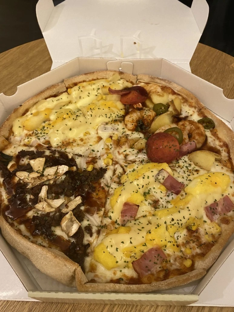 금요일이나 토요일 저녁에 핏자나 스시를 시켜서 먹으며 영화를 보거나 수다를 떠는 게 아이와의 주말 루틴 중 하나였다. 갑자기 피자가 먹고 싶어서 검색을 했는데 사진으로만 봐도 토핑이 맛있어 보이고 더구나 다른 종류 네 가지가 한 판에 들어있는 핏자가 있었다.