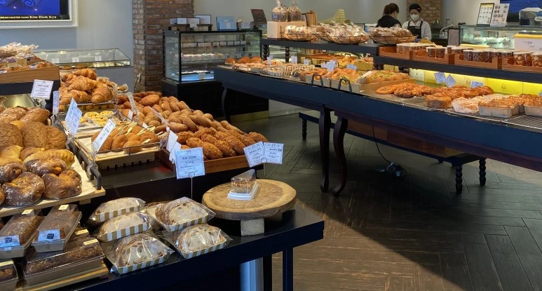 '김덕규 베이커리'는 현지인 누구나 인정하는 김해의 대표 빵집이라고 한다. 경상남도에서는 최초로 제과제빵 부문에서 14번째로 '대한민국명장'으로 선정된 김덕규 대표가 운영하는 35년 된 빵집이다. 매장은 김해시에 세 군데가 있고 내가 간 곳이 본점이었다. 크기를 막론하고 한국의 제과점들이 모두 그렇지만 맛있어 보이는 빵들이 너무 다양해서 선뜻 고르지 못하고 윈도우 쇼핑하듯이 매장 안을 돌아다니며 오랜만에 슬금슬금 욕심을 부리는 빵순이의 본능을 다독거린다.