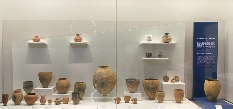신석기시대의 대표적인 토기가 '빗살무늬토기'라면 청동기시대는 '민무늬 토기'다. 민무늬 토기는 굵은 모래나 돌가루를 섞은 다소 거친 흙으로 빚어서, 천정 구조가 없는 노출된 가마인 '한데 가마'에구운 토기로 보통 갈색이나 적갈색을 띠는데 지역에 따라 다양한 색상을 보이기도 한다. 빗살무늬 토기에서 민무늬 토기로의 변화는 표현 방식이 단순한 '선'에서 '색'으로 넘어간 것이라고도 할 수 있는데, 이 변화는 그릇이 점점 더 일상에 필요한 용도뿐만 아니라 다양한 미적 감각을 표현하는 수단으로도 한층 발전한 것이라 할 수 있다.