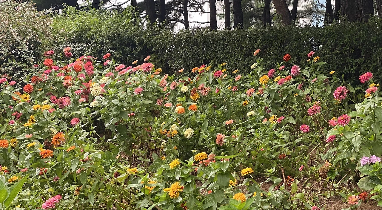 꽤 오랜 시간을 보낸 박물관을 나오니 아직 비가 오고 있었다. 우산을 쓰고 넓은 광장을 걷는데 뒷산으로 올라가는 산책로가 보였다. 저기엔 뭐가 있으려나.. 야외 조형물도 하나 있고 산호처럼 생겼다고 주장하는데 전혀 그렇게 보이지 않는 평범한 '아왜나무'를 지나 경사진 길을 올라가며 약간 후회했다. 비는 점점 더 내리고 우산을 썼는데도 백팩과 발이 젖는다. 그만 내려갈까... 그러다 이 환한 꽃밭을 만났다. 조금 멀고 빗속이었는데도 단박에 백일홍인줄 알아보았다. 어릴 때 할머니의 꽃밭에도 있었는데 그땐 예쁜 줄 모르겠더니 무리 지어 핀 걸 몇 번 보고는 좋아하게 된 꽃이다. 박물관뒤의 백일홍, 모든 감각이 빠른 속도로 일상으로 돌아온다. 갑자기 배가 고팠다. 언젠가는 가려고 했던 빵집이 떠오른다.