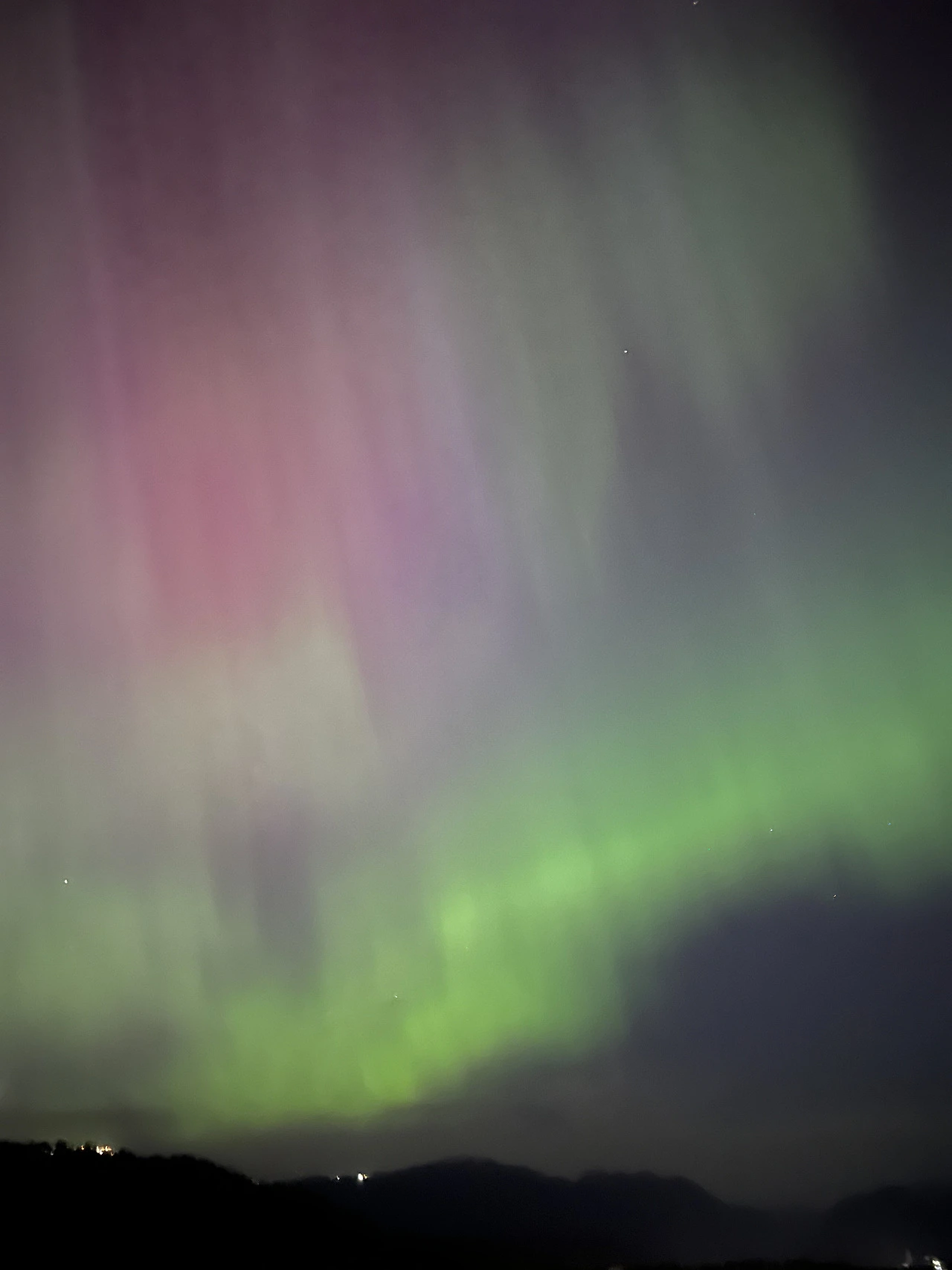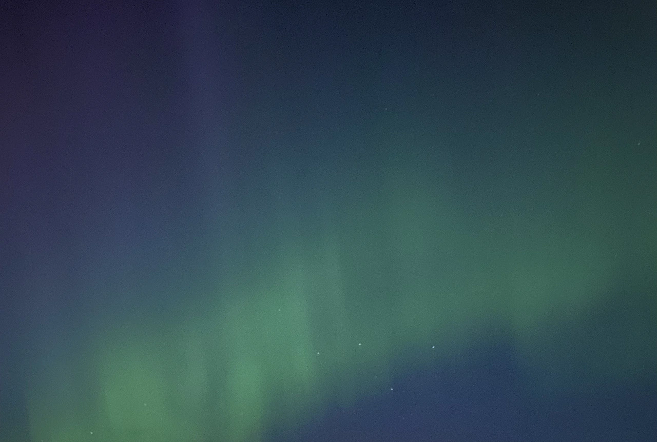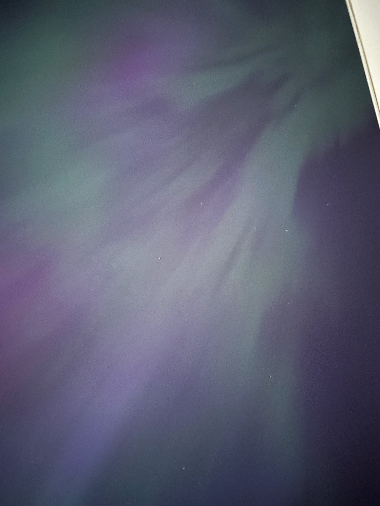 가브리엘이 보내준 사진에 비하면 부실하지만 제가 북극에 사는 것도 아닌데, 내 집 발코니에서 오로라를 보았다는, 너무나 비현실적인 현실에 연신 감탄하며 즐거웠습니다. 대개의 자연이 주는 위로나 평안이 고요한 것이었다면 오로라는 오히려 흥분이었어요. 나중에는 헌터까지 나와서 셋이 꽤 오래 밤하늘을 바라보았습니다. 탁 트인 평원의 밤하늘에 펼쳐지는 오로라를 보기 위해 비행기까지 타고 찾아가는 사람들이 이해가 되었습니다.