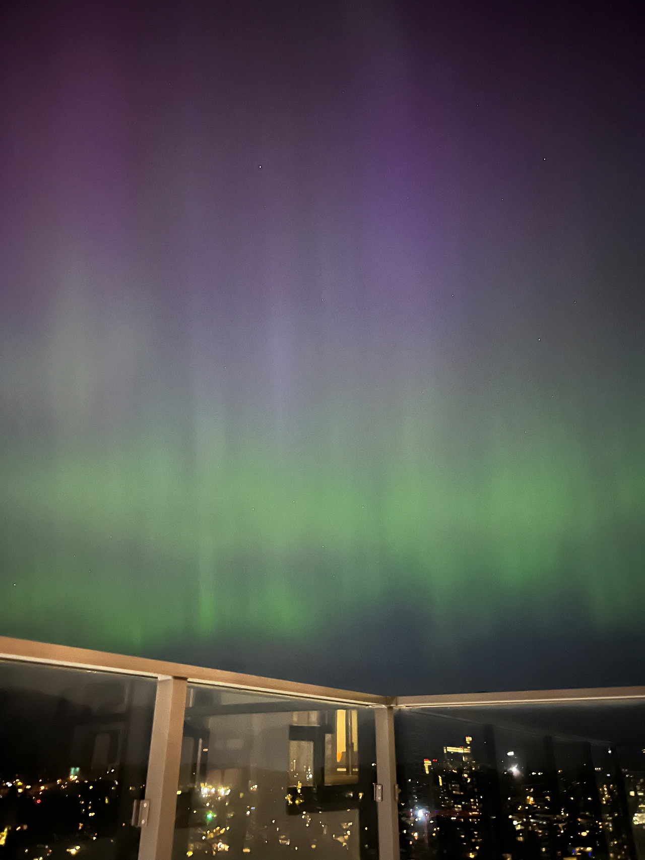 지리적인 위치상 한국에서는 거의 볼 수 없는 현상이라니 공유하고 싶어서 올립니다. 이 사진들은 '오로라'가 아니라 우리 집 '발코니'에 방점이 찍힌 것들이니 감안하고 봐주세요.