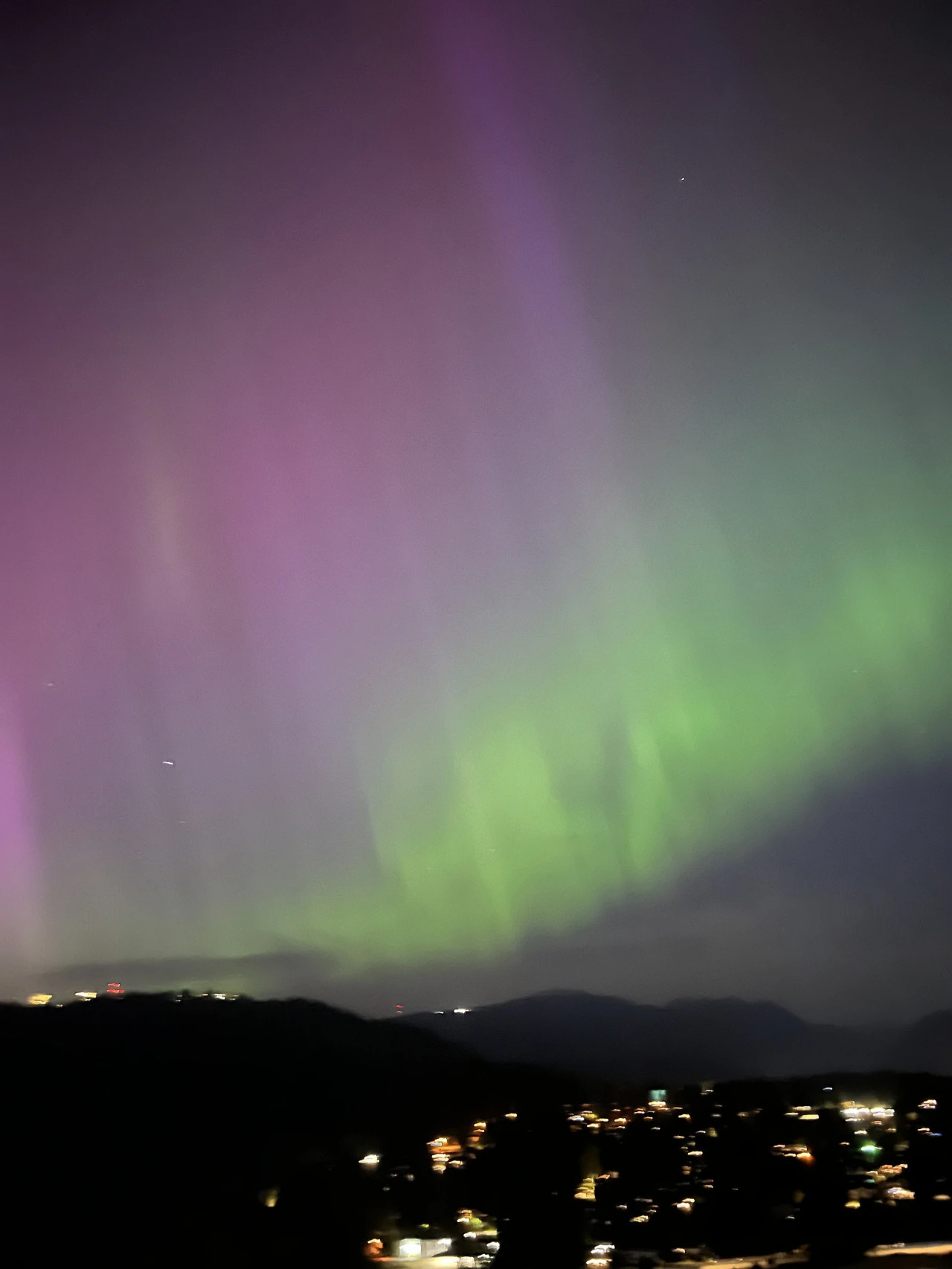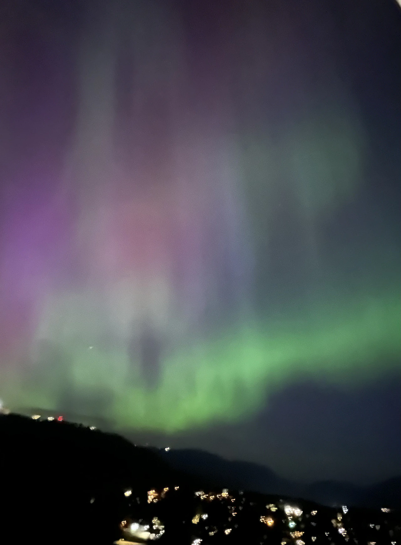 며칠 전부터 오로라 예보(?)가 있었고, 다운타운에 사는 아이의 친구 가브리엘이 금요일 저녁에 오로라를 보려고 근처의 바닷가로 갈 예정이라고 했을 때만 해도, 그저 얼핏 지나가는 현상일텐데 핑계김에 들뜬 금요일을 보내겠구나 하며 웃었는데, 가브리엘이 스페니쉬 뱅크스 비취(spanish banks beach)에서 보낸 실시간으로 찍은 사진을 보고 깜짝 놀랐어요.