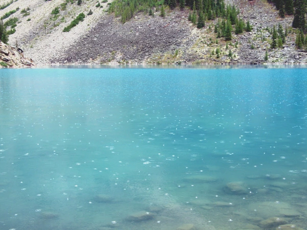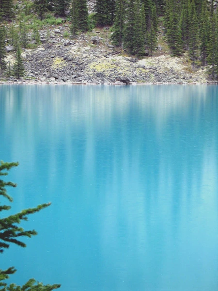 저는 로키 여행 중에 만난 호수들 중에서 모레인 호수가 가장 마음에 들었습니다. 우선은 호수의 물빛이 순간, 들뜬 탄성 대신 침묵하게 될 만큼 맑고 깊기도 했지만 단 한 가지만으로 '가장'이란 수식어를 주게 되는 경우는 드물죠. 모레인 호수의 매력은, 호수까지 가는 길, 호수를 품고 있는 주변 풍경, 공기의 밀도, 진공상태 같은 고요 속에서도 감지되는 소리들.. 등이 어우러져 더할 나위 없이 아름다웠습니다. 게다가 잠깐 비도 내렸어요. 물 위로 내리는 빗물은 땅 위의 그것과는 다른 느낌을 불러냅니다. 게다가 로키에서 가장 맑은 터코이즈 물빛 위로 음표처럼 떨어지는 빗방울이라니... 하마터면 원스어판어타임 시절의 어느 겨울 저녁, 어두워지는 바다 위로 내리는 함박눈을 함께 바라보던 첫사랑의 기억보다도 가슴이 설렐뻔했습니다.