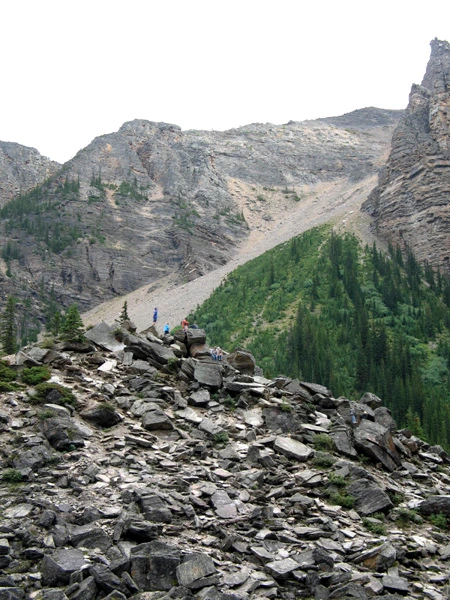 제방 꼭대기에 올라간 사람들이 바라보는 풍경은 훨씬 넓고 깊으리란 짐작에 욕심이 났지만 여행 마지막 날이라 너무 피곤해서 욕심내지 않습니다. 올라가면 Valley of the Ten Peaks을 제대로 볼 수 있겠지만 저는 이미 호수의 물빛만으로도 흡족했습니다.