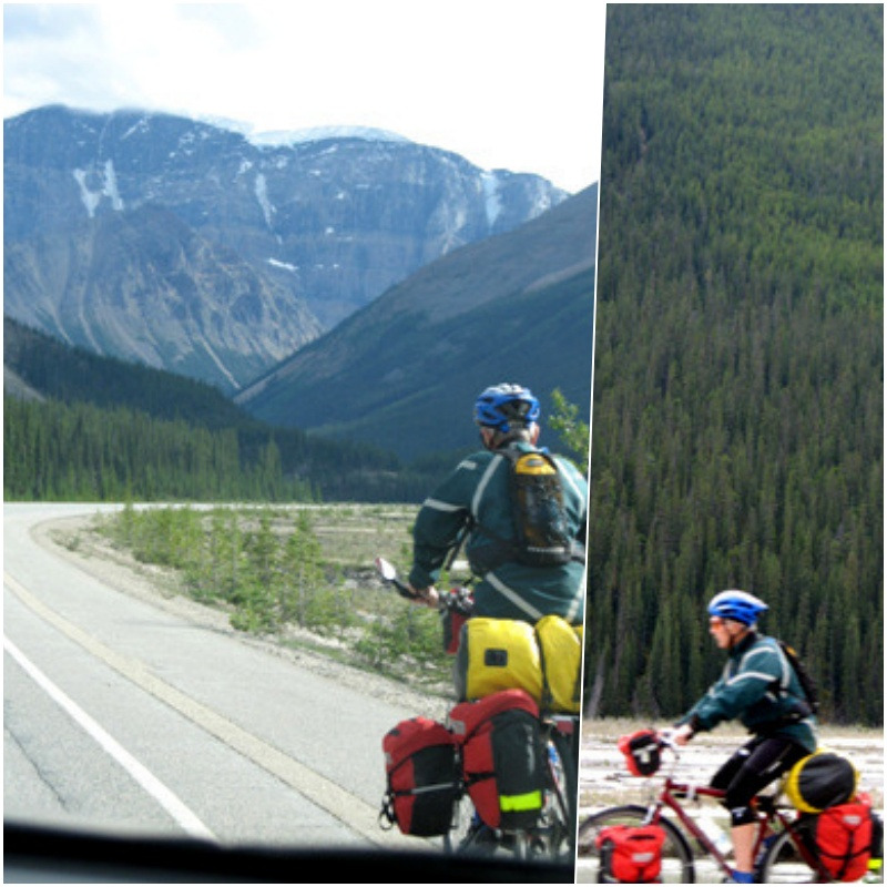 그리 다양하지 않은 자연색에 익숙해져서 별 긴장감 없던 시야에 갑자기 원색이 뛰어듭니다. 아무리 길이 좋아서 평지처럼 보인다 해도 귀가 먹먹하다 터지기를 반복하는 높은 곳인데 자전거 여행이라뇨. 이 맑은 공기와 바람을 오롯이 온몸으로 다 느낀다는 건, 아무리 선루프까지 다 열었다 해도 차 안에서 느끼는 그것과는 비교할 수도 없을 것입니다. 자전거로 달리는 모습이 어찌나 매력적인지 감탄하는 중이란 티를 내고 싶어서 창문을 열고 큰 소리로 인사합니다. 멋있어요! 가는 도중 행색이 비슷한 사람들을 또 보았습니다. 어쩌면 일행인지도 모르겠어요. 자기 속도대로 즐기며 가다가 약속된 장소에서 만날 거라는 추측으로 잠깐 들었던 잔걱정을 지웁니다. 혼자서 자전거 여행을 하기엔 로키는 너무 광활하거든요.