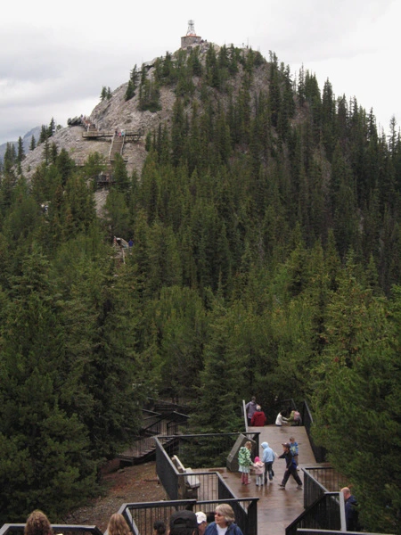 캐나다는 한국처럼 하이킹 코스를 인위적으로 정비하는 경우는 거의 없는데 설퍼 마운틴 꼭대기의 전망대 근처에는 이렇게 길을 만들어 놓아서 저도 능선을 바라보며 끝까지 걷고 다시 전망대로 되돌아왔습니다. 물론 산 정상까지는 곤돌라를 타고 올라왔습니다. 올라오는 동안 까마득한 아래로 하이킹으로 올라오는 사람들이 보였는데 감탄과 동시에 기계를 사용해서 올라가는 제가 뭔가 반칙을 쓰는 것 같던 터무니없는 마음이 그나마 조금 해소가 되었습니다.