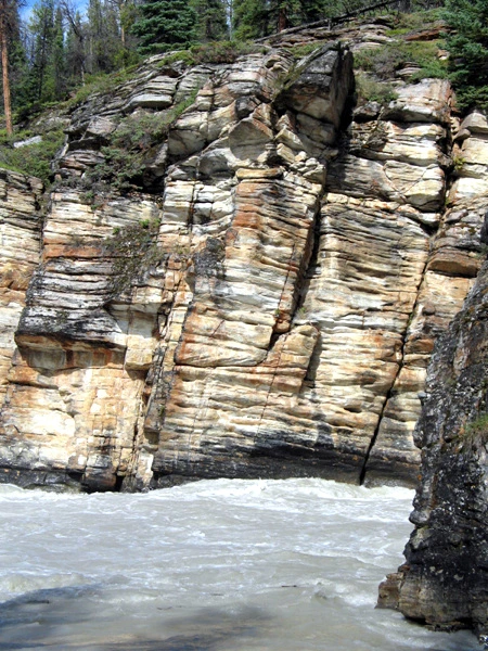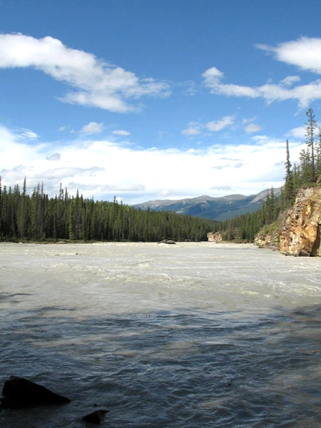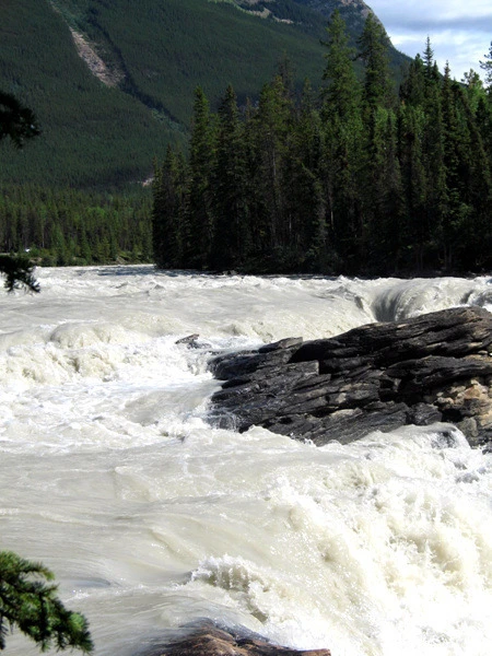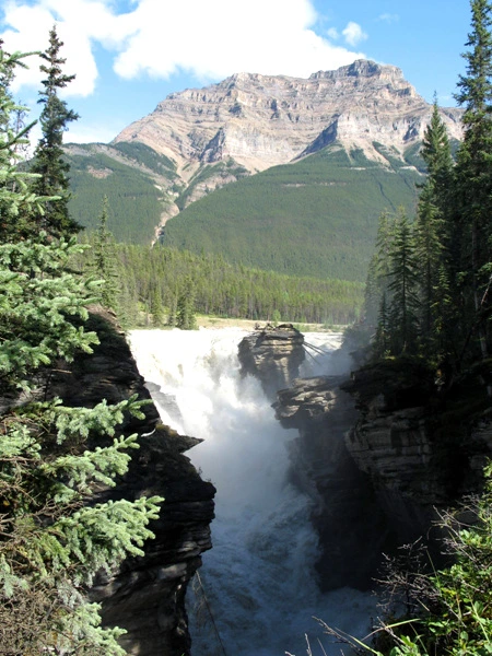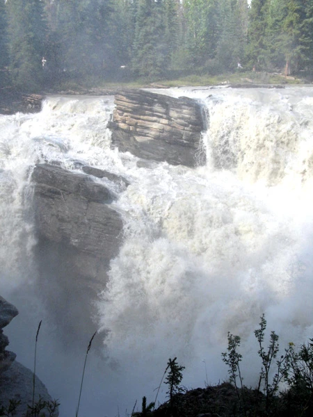 아서배스카 폭포(Althabasca Falls)는 컬럼비아 대빙원에서 시작되어 아이스필드 파크웨이를 따라 흐르는 썬웹터 강과 남쪽에서 온 아서배스카 강이 합류하여 다시 30km 정도 흘러가서 만들어진 폭포입니다.