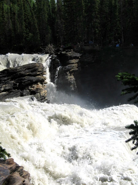쟈스퍼를 거쳐 에드먼튼까지 흘러가는 폭이 200m가 넘던 강물이 10m 정도의 좁은 협곡을 만나 한꺼번에 쏟아지는 곳이라서 물의 양이나 속도가 엄청났습니다. 귀가 먹먹한 폭포 소리는 세상의 모든 소리를 지웁니다. 바로 옆 사람과의 대화도 어려울 정도로 그야말로 지축을 흔들것 같은 소리 앞에서 불연듯,