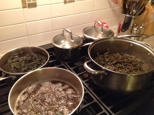 푹 삶아야 하는 마른 나물들. 취나물, 고사리, 시래기, 참나물... 말린 나물을 물에 잠깐 불렸다가 끓는 물에 5분 정도 삶은 후 뚜껑을 닫고 다음 날 아침까지 그대로 둔다. 이렇게 하면 오래 끓이지 않고도 볶기에 적당한 포근한 나물이 된다.