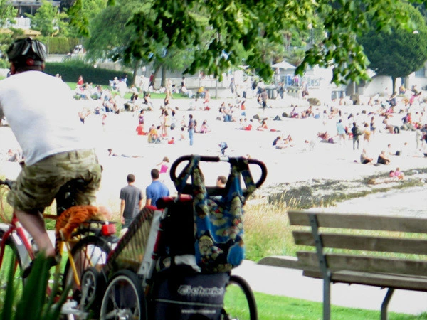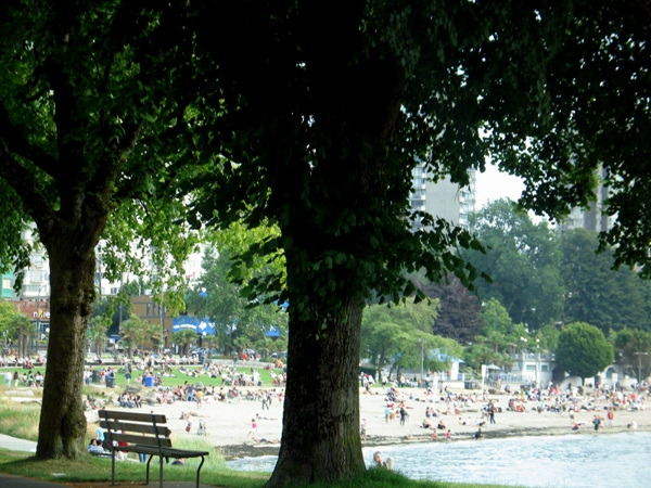 햇살의 품이 넓은 어느 여름날, 다운타운 밴쿠버의 '잉글리쉬 베이' 근처를 지나다가 서행하는 차 안에서 찍은 사진이다.