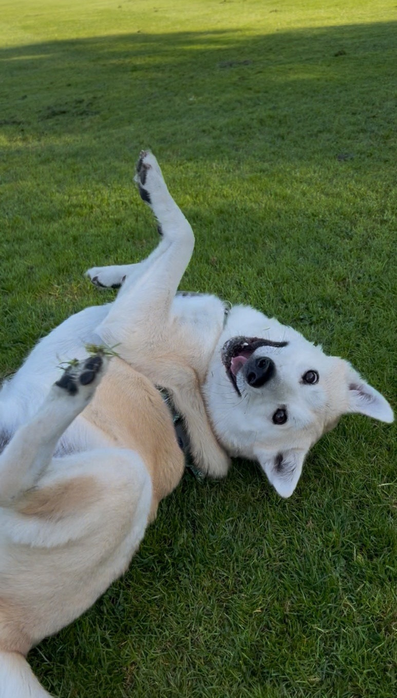 자주 있는 일은 아닌데 가끔 잔디 운동장이나 흙바닥을 뒹굽니다. 물을 싫어해서 흙탕물에선 뒹굴지 않는 게 고마울 뿐입니다. 너무 행복해서 헤까닥한 표정... ㅎㅎ