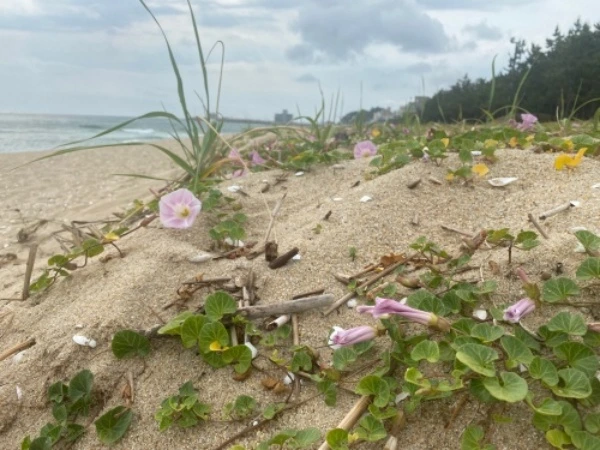 아침 바다를 산책하다 야생화를 발견하면 마치 뜻밖의 선물을 받은 것처럼 즐겁다. 아마도 전혀 예상하지 못했던 아름다움이라 그럴 것이다. 산책을 오래 하다 보니 바다가 피워내는 야생화도 계절 따라 다양하다는 걸 알게 되어서 어떤 날은 혹시 못 보던 야생화가 있을까 싶어서 두리번거리기도 한다.