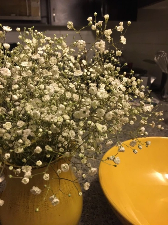 그래도 습관적인 취향은 단번에 바뀌지 않는지 아이는 늘 유리병에 안개꽃을 꽂고 싶어하지만 나는 행여 안개꽃이 부실해 보일까 봐 노란 화병에 앉힌다.