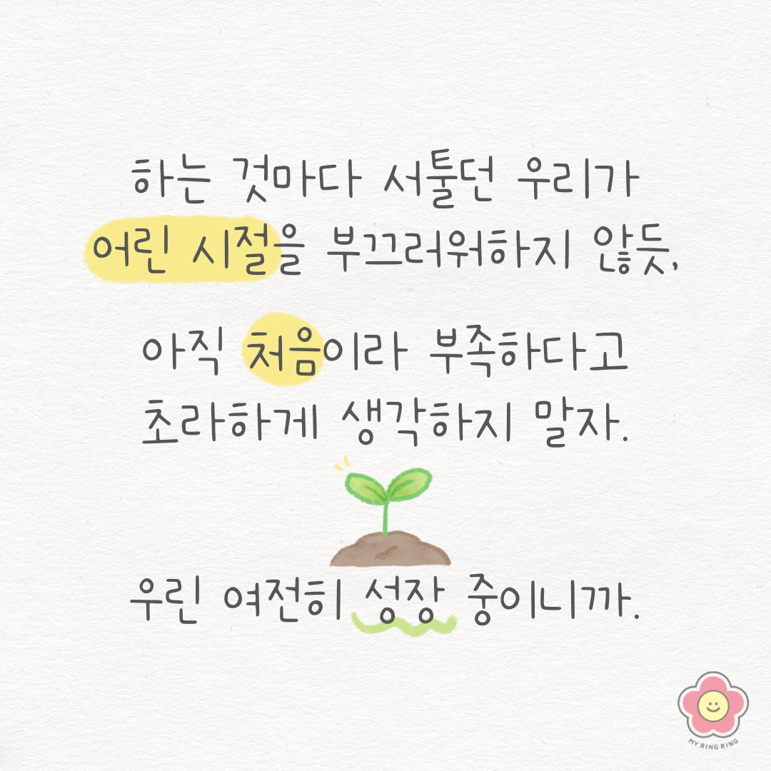 지금 고민하고, 걱정하는 이 모든 순간에도 우린 여전히 성장하는 중이거든요 :-)