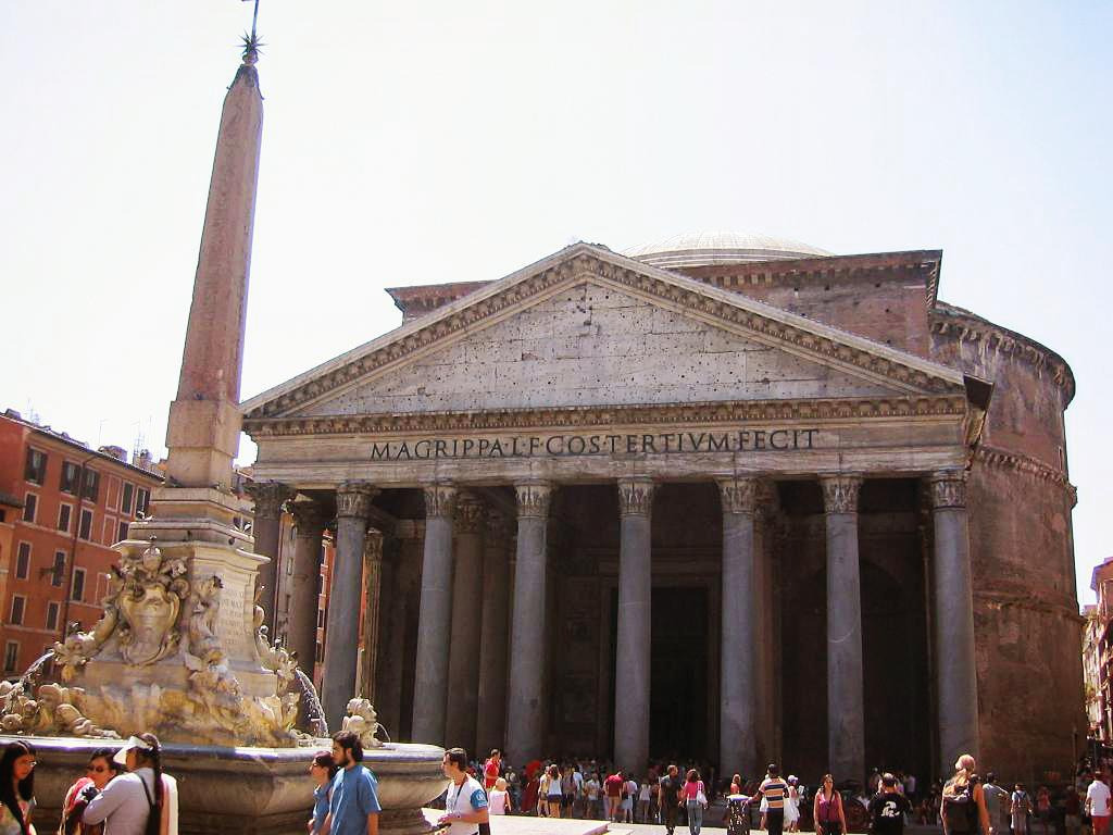판테온은 또 어떠한가. 내부로 들어가면 더욱 그 규모와 아름다움에 탄복하게 되는 이 건물은, 조명 하나 없이도 내부를 밝게 비추는 돔 중앙에 뚫린 커다랗고 둥근 구멍과, 기둥 하나 없이도 이 큰 원통형 건물을 든든히 받쳐 주는 공법으로 2000년 후에 만난 현대인들을 기죽인다. 지금은 로마를 거친 주요 인물들의 무덤들로 그 경건함까지 갖추고 있다.