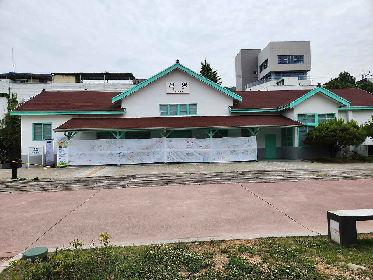 진영역 철도박물관, 내가 찾은 구 진영역의 현재 이름이다. 방송이나 책자를 통해 이미 여러 번 접한 진영역 철도박물관이다. 역사 주변이 정말 넓다. 역사 부지가 이렇게 넓은 걸 보니 진영역의 지난날이 어떠했을지 조금이나마 상상이 간다. 경전선 진영역은 1905년, 일본이 군수품을 나르기 위해 군용철도로 개통되었다가 1907년에 보통역으로 영업을 개시하였다고 한다. 1943년에 지금의 역사로 개축되었다고 하니 건물 자체의 나이로도 80년의 세월을 훌쩍 넘긴 셈이다. 2010년 경전선 복선 전철화에 따라 105년 만에 진영역이 폐역이 되고, 새로운 위치로 역사가 이전되었는데 폐역 직전에도 800여 명의 승객이 드나들었다고 한다.