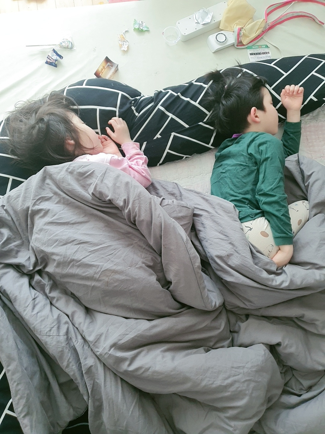 삼남매를 1주일 가정보육을 했어요.