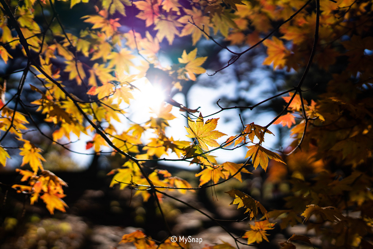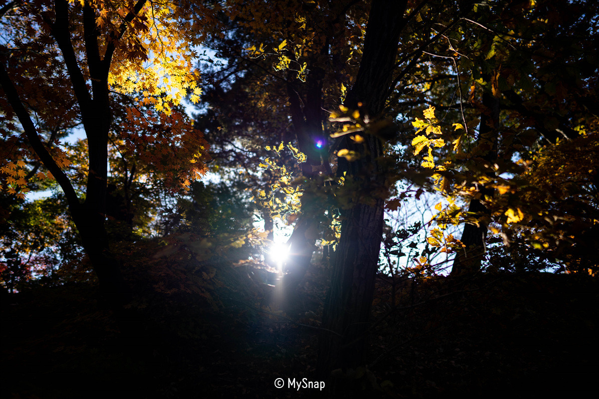 화려한 색을 뽐내는 단풍잎 사이로 비치는 햇살이 너무 따뜻했다. 그리고 기분 나쁘지 않은 즐기고 싶은 눈부심이었다. 그래서 가만히 바라보다가, 이 모습을 간직하고 싶어서 뷰파인더로 다시 바라보면서 셔터를 눌렀다. 이 순간을 나는 너무 좋아한다. 그냥 나만을 위한 시간이고, 아무런 생각이 들지 않는 집중의 시간이 나에겐 휴식과 같은 것이다.