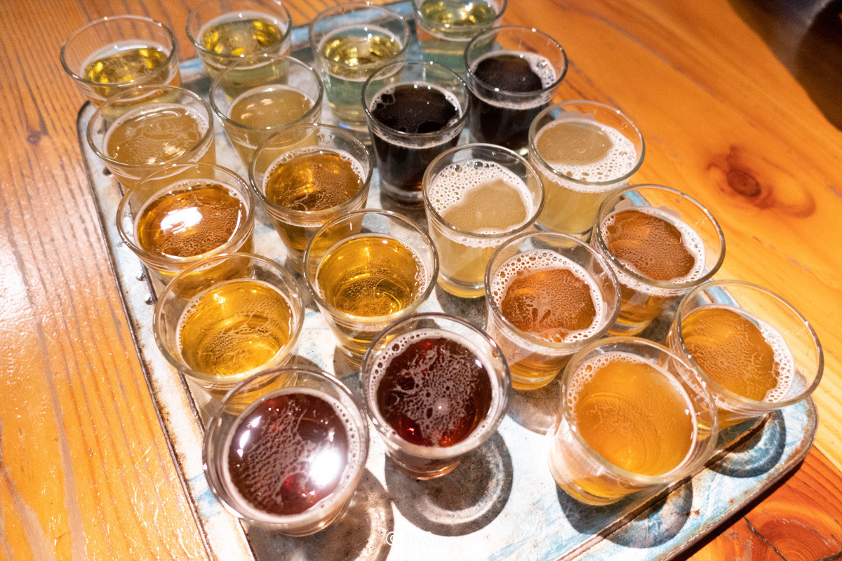 간단하게 플리마켓을 구경하고 나오니 일몰이 시작되면서 하늘이 화려하게 변하고 있었다. 그리고 눈 앞에는 맥주 양조장이 있어서, 오늘 하루를 마무리한다는 의미로 맥주 한잔(?)을 하러 들어갔다. 하지만, 너무 많은 맥주 종류들이 있어서 결국 샘플러로 주문했다.