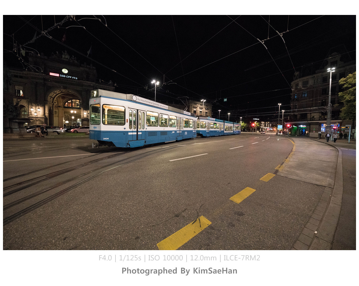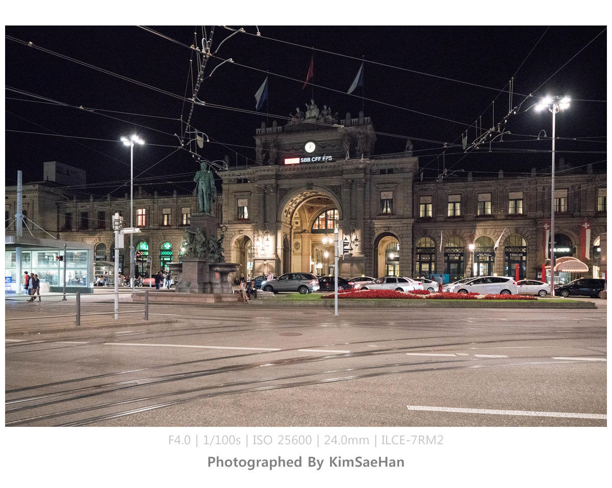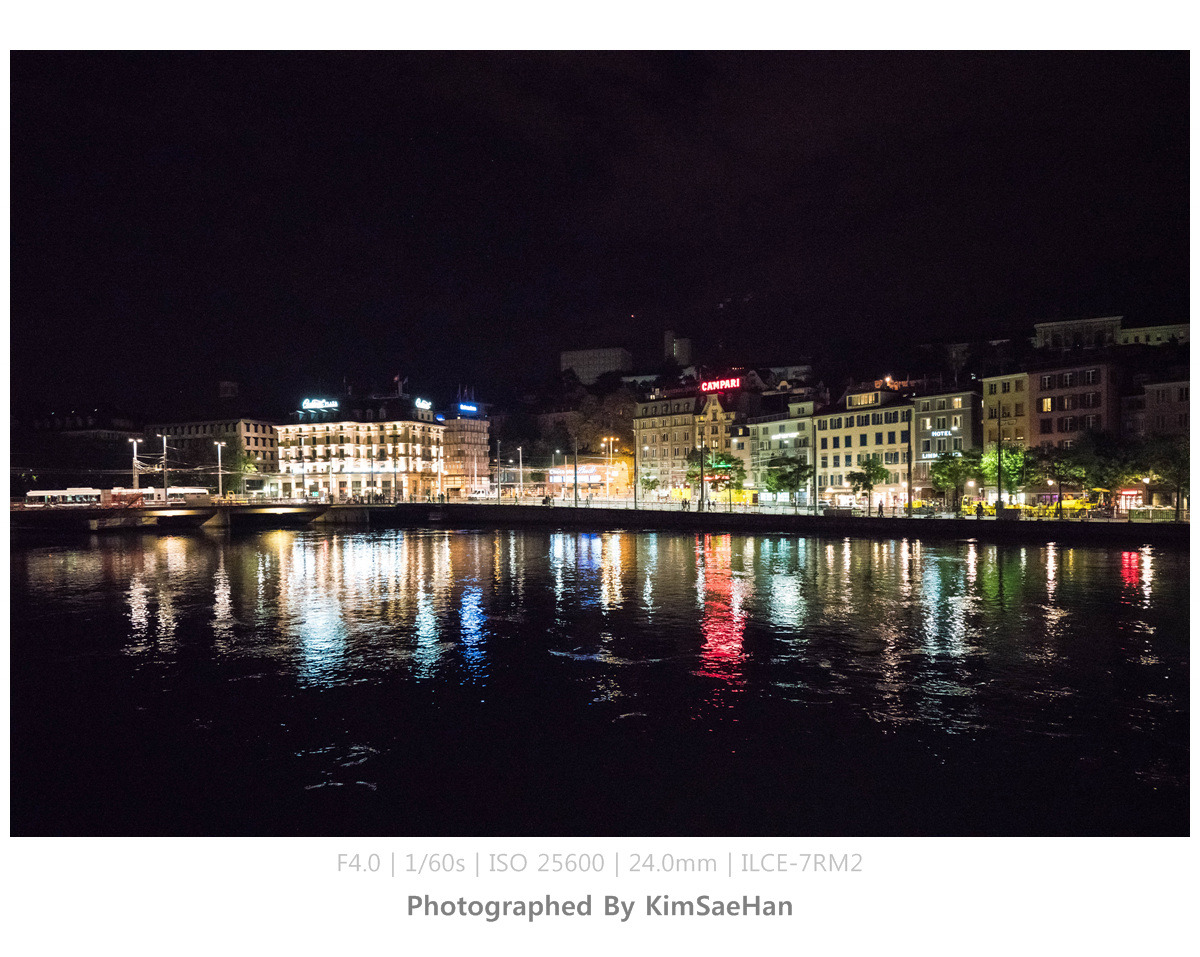 맥주를 마시며, 그냥 들어가기 아쉽다는 얘기를 하며 주변에 강이 있으니까 한번 둘러보고 들어가자고 했다. 취리히 중앙역을 따라 리마트 강까지 천천히 걸으며 이야기도 하고 사진도 찍으며 취리히의 야경을 감상했다. 생각해보니, 여행 일정 중에 취리히는 오늘 하루만 머물기 때문에 야경을 볼 수 있는 시간은 지금밖에 없었다. 그래서 더욱 아쉽기도 해서 천천히 걸으며 가만히 바라보기도 하고, 시원하게 불어오는 강바람도 느끼면서 처음이자 마지막 취리히 밤을 즐겼다.