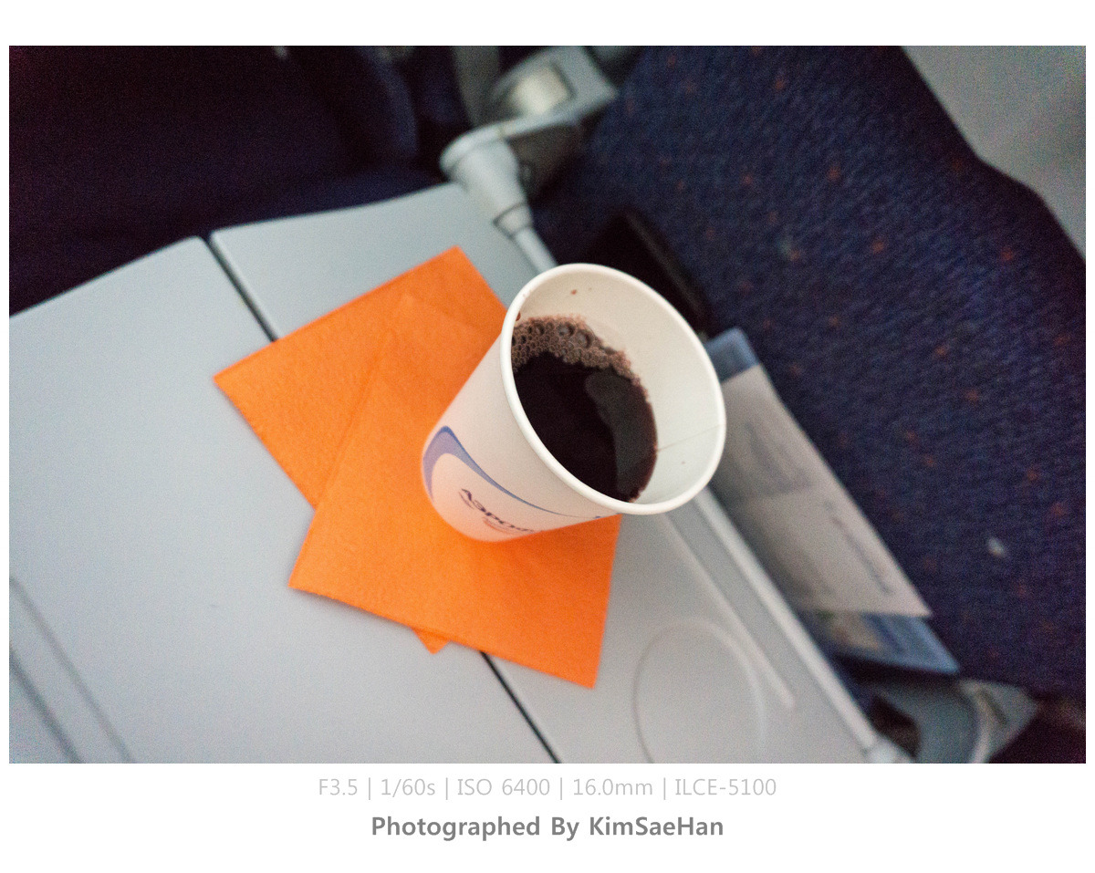 약 1시간 정도 지연이 된, 2시 10분경에 비행기는 드디어 이륙을 했다. 인천공항이 점점 멀어지고 이내 구름 위로 올라서자, 기내 서비스가 시작되었다.