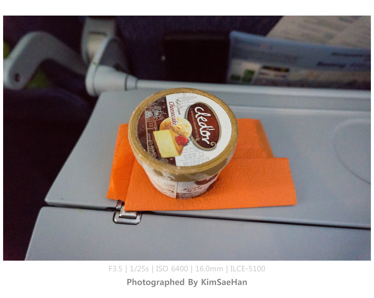 그리고 어느 정도 시간이 지나자, 이 항공에서 제공한 음식 서비스 중에서 가장 맛있는 것이 나왔다. 바로 아이스크림이다. 당당하게 한국어가 적혀있는 한국 아이스크림. 기쁜 마음으로 천천히 맛을 음미하며 영화를 봤다.