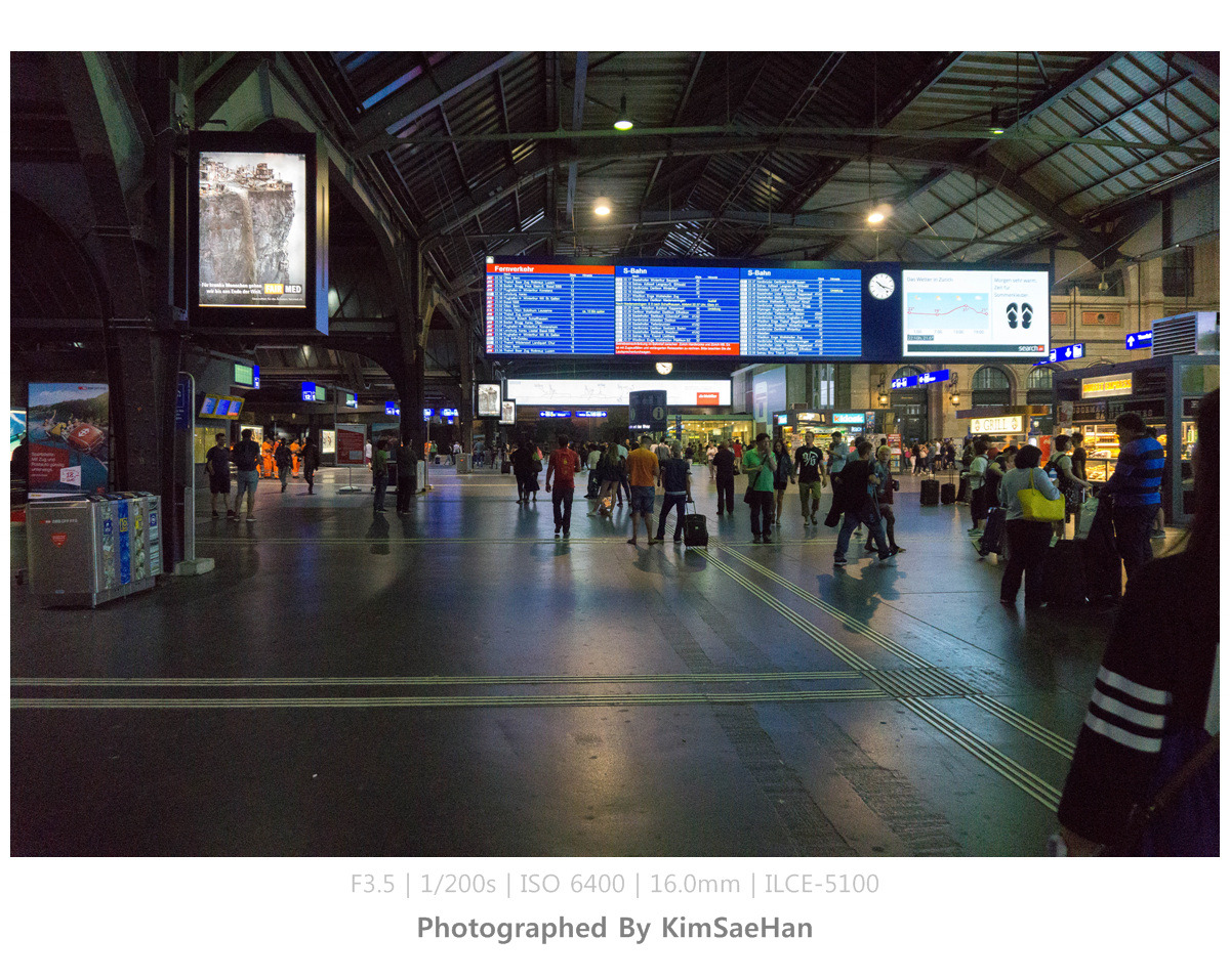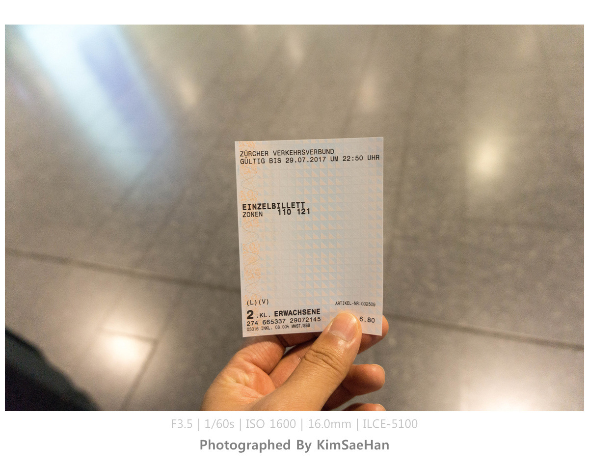 공항에서 취리히 중앙역까지 기차로 10분 정도 소요될 만큼 짧게 걸린다. 티켓팅을 하고 기차 타러 내려갔으나 플랫폼을 잘못 들어서는 바람에 약간 헤맸지만, 친절한 외국인 덕분에 다시 플랫폼을 제대로 찾아서 기차를 탔다.