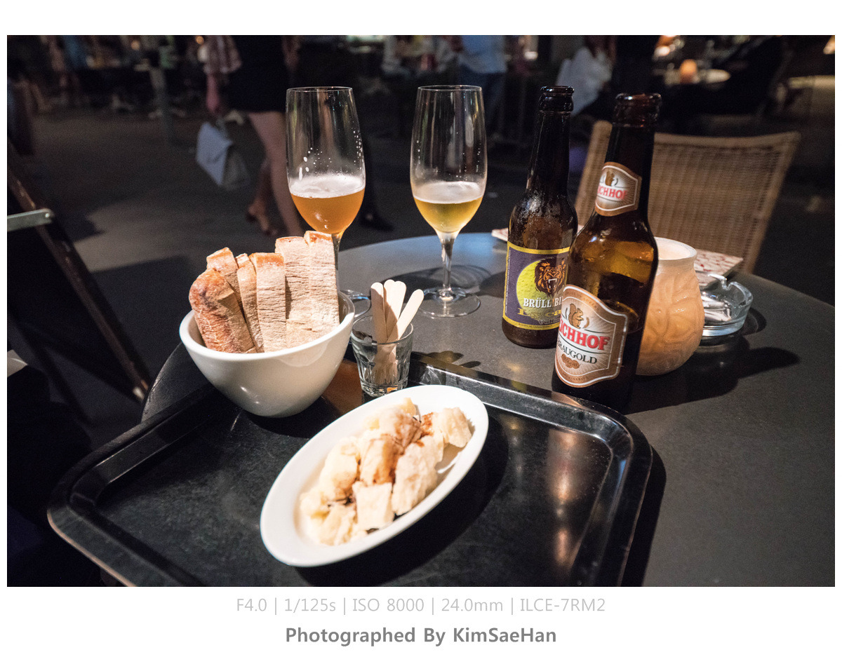 체크인하고 그대로 쉬기엔 아쉬워서 호텔 바로 앞에서 간단히 맥주 한잔 하기로 했다. 눈에 보이는 곳에 바로 앉아서 메뉴판을 받았는데 소문대로 물가가 사악하다. 맥주 한잔에 5~7천 원은 잡아야 했다. 안주 가격도 기본 만원은 넘어갔다.