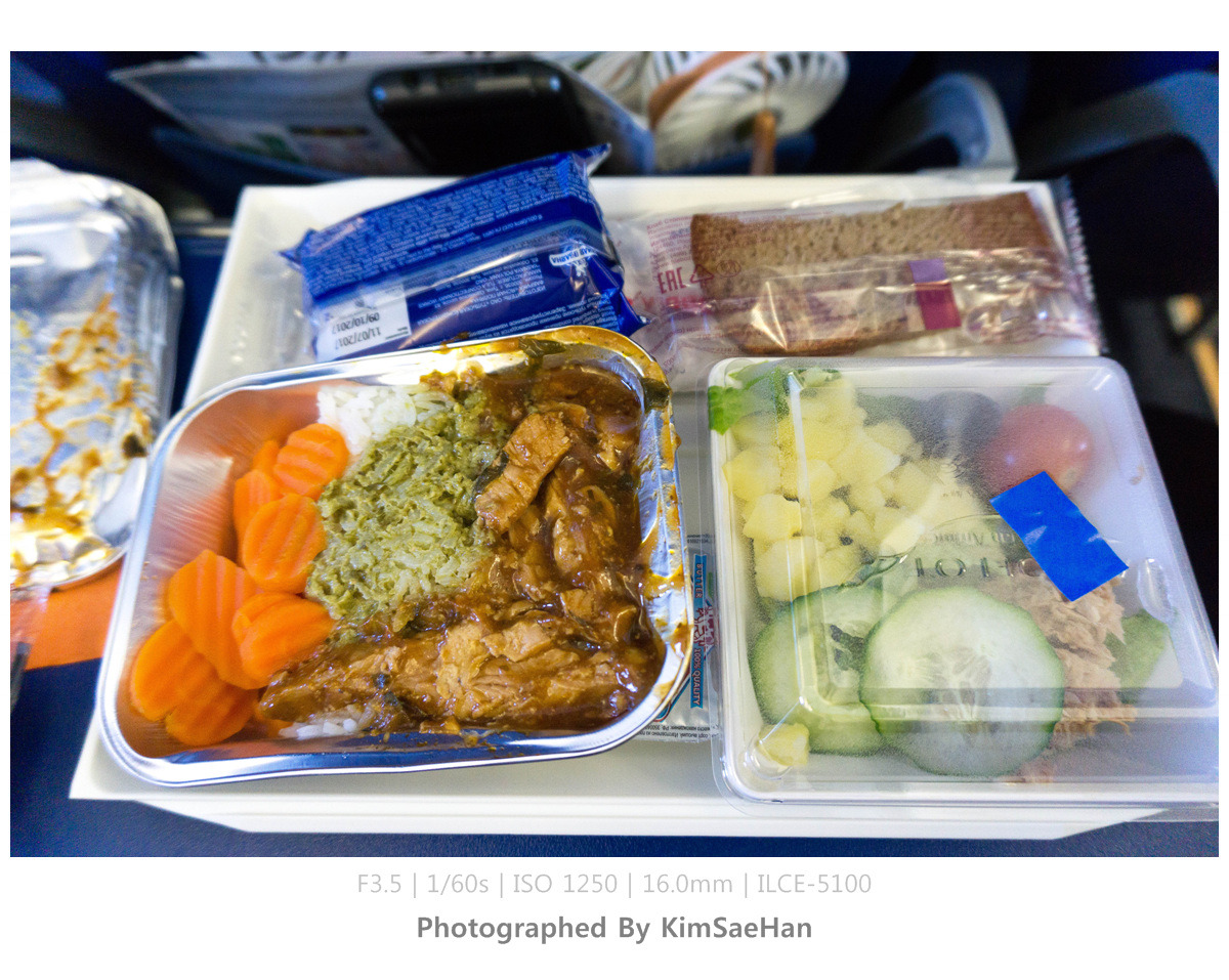 보딩 시간이 되어, 빨리 기내로 들어가서 짐을 싣고 푹 쉬기로 했다. 3시간 정도만 가면 되기 때문에 9시간을 날아온 나에겐 아무것도 아니다. 여기에서도 한번 더 기내식이 제공되는데, 이미 두 번 당했기 때문에 큰 기대 없이 받았고 역시나란 생각이 들었다.
