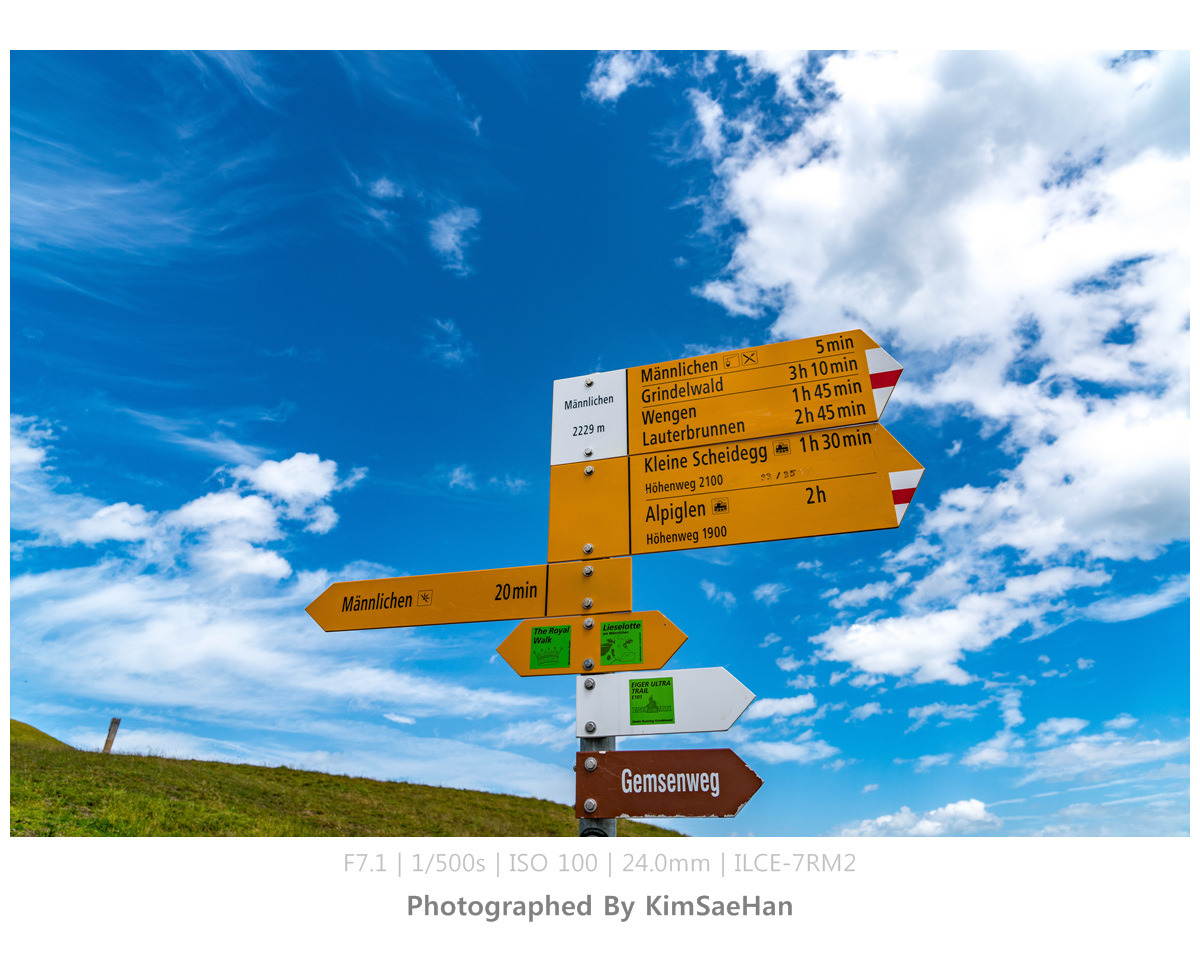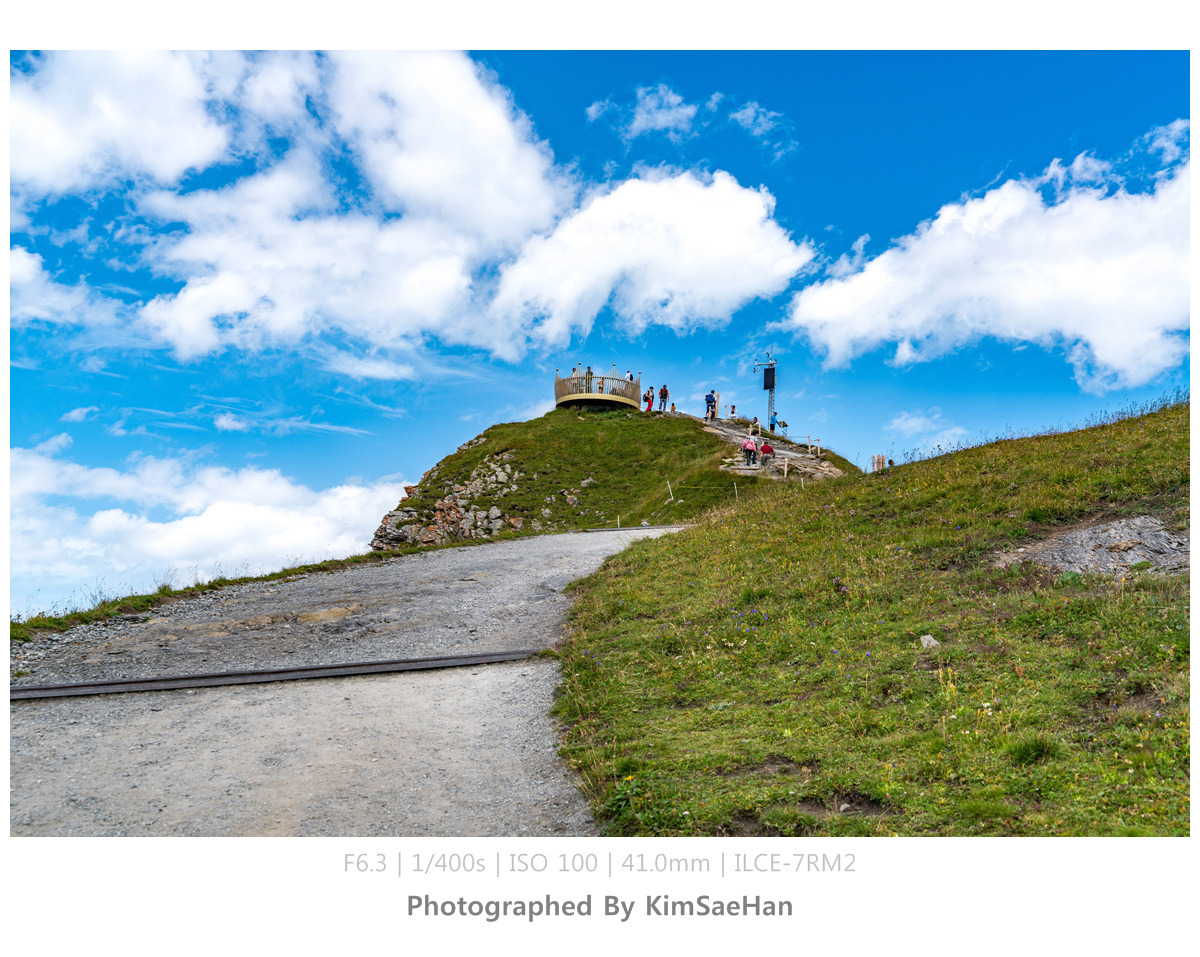 뭰리헨 역에 도착해서, 20여분 꼭대기로 트래킹을 해야 한다. 제일 높은 곳에서 융프라우, 아이거 북벽, 뮌히를 왕관 모양처럼 볼 수 있기 때문이다. 여기서 바로 클라이네샤이덱으로 트래킹을 시작하는 사람들도 있었지만, 그래도 온 김에 한번 보고 싶어서 1시간 정도만 투자하기로 했다.