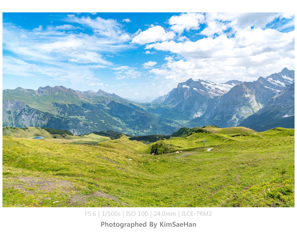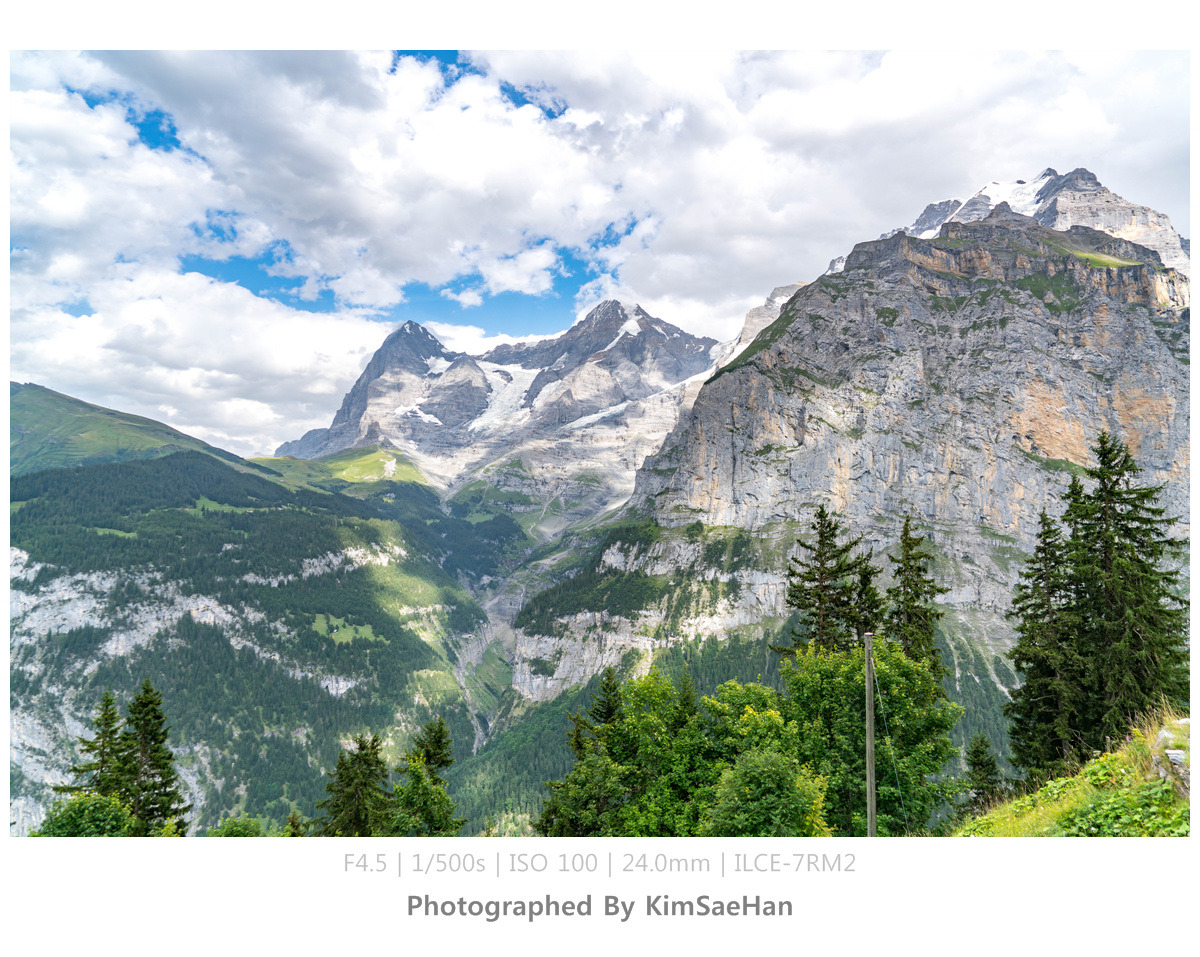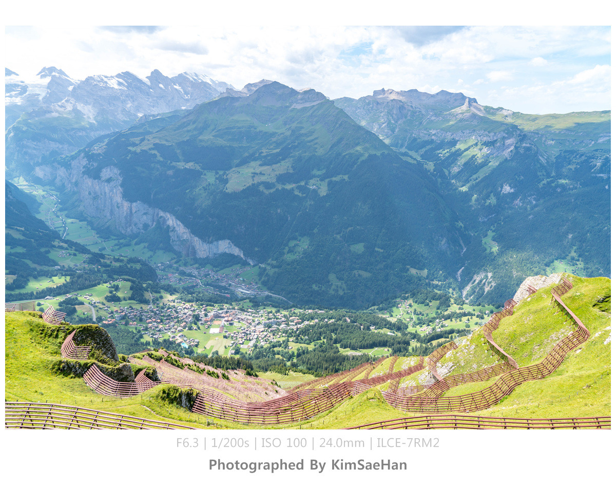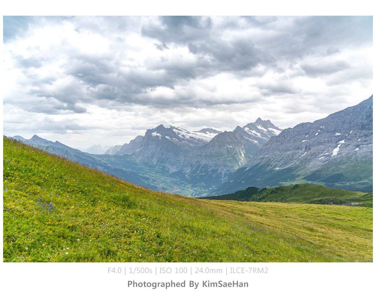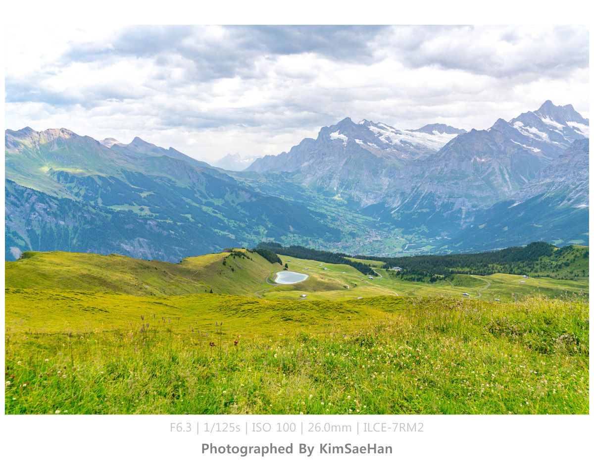 그림 같은 길을 따라 천천히 걸어서 뻥 뚫린 풍경을 바라보며 걷다 보면, 어느새 꼭대기에 도착하게 된다. 고개를 왼쪽으로 돌리면 그린델발트가 보이고, 오른쪽으로 돌리면 벵엔이 보인다. 또 눈 앞에 3개의 봉우리가 보인다. 특히, 융프라우는 장관이다.