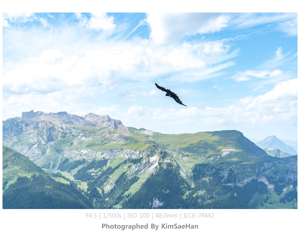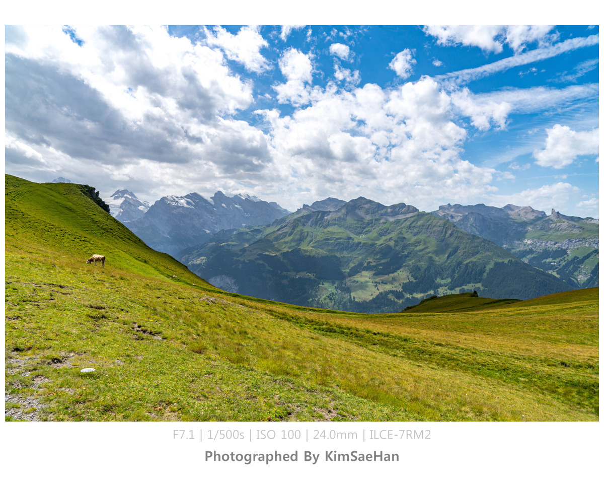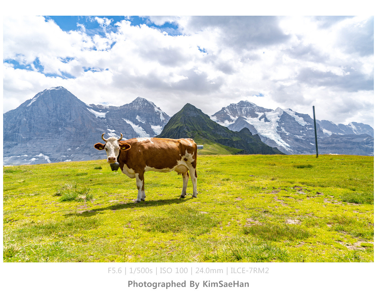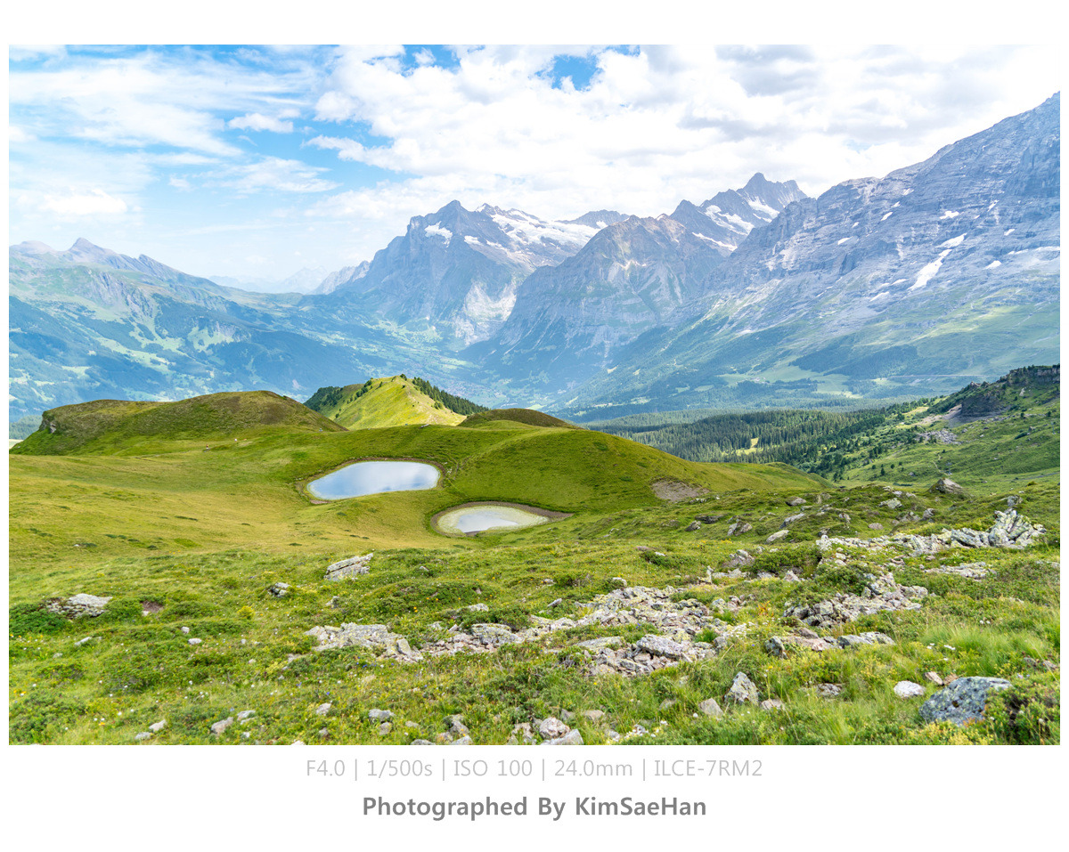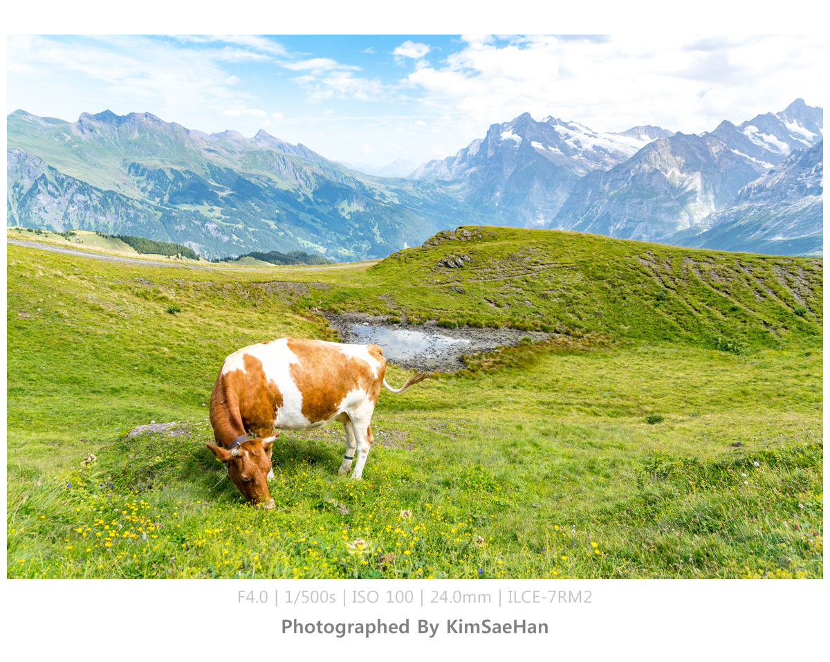 그림 같은 길을 따라 천천히 걸어서 뻥 뚫린 풍경을 바라보며 걷다 보면, 어느새 꼭대기에 도착하게 된다. 고개를 왼쪽으로 돌리면 그린델발트가 보이고, 오른쪽으로 돌리면 벵엔이 보인다. 또 눈 앞에 3개의 봉우리가 보인다. 특히, 융프라우는 장관이다.