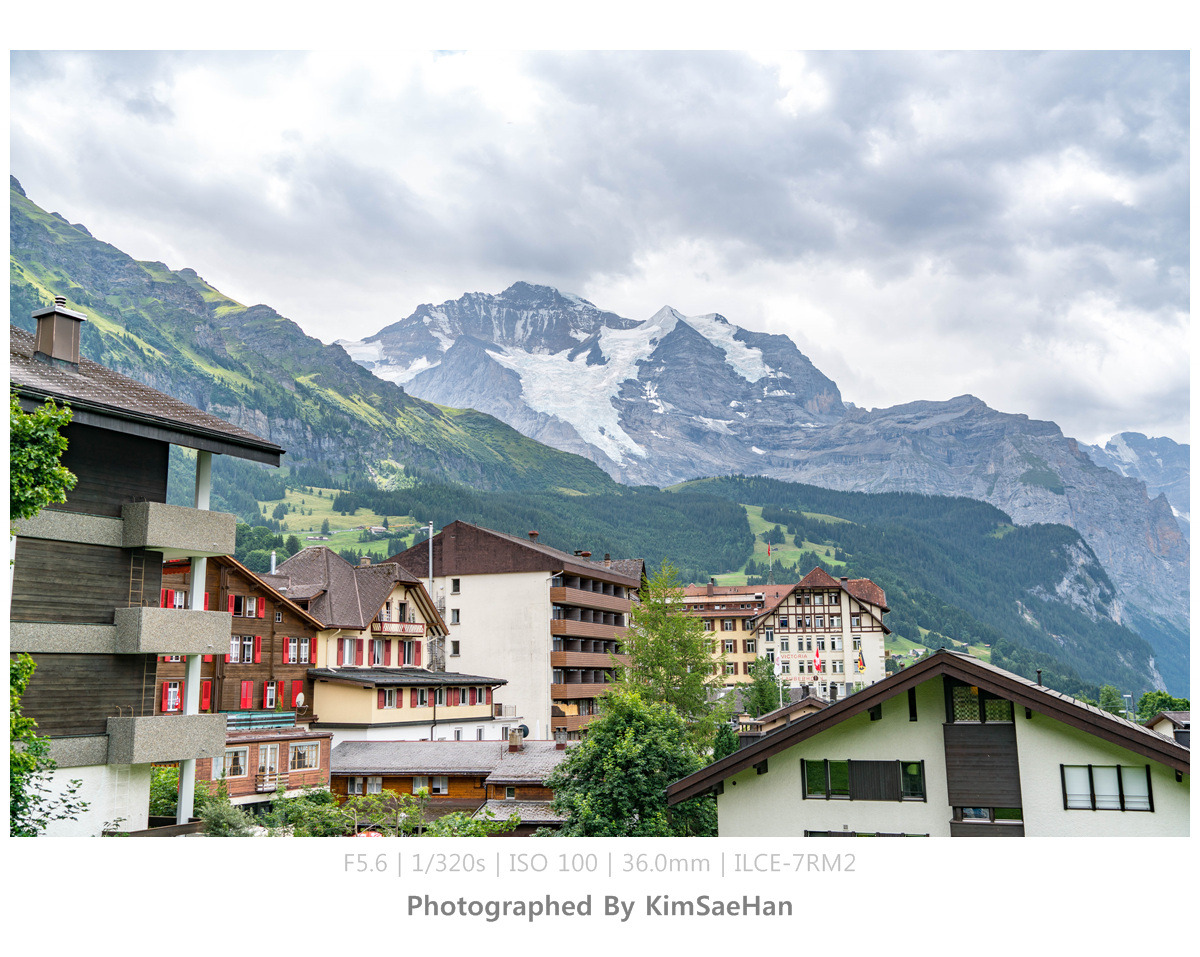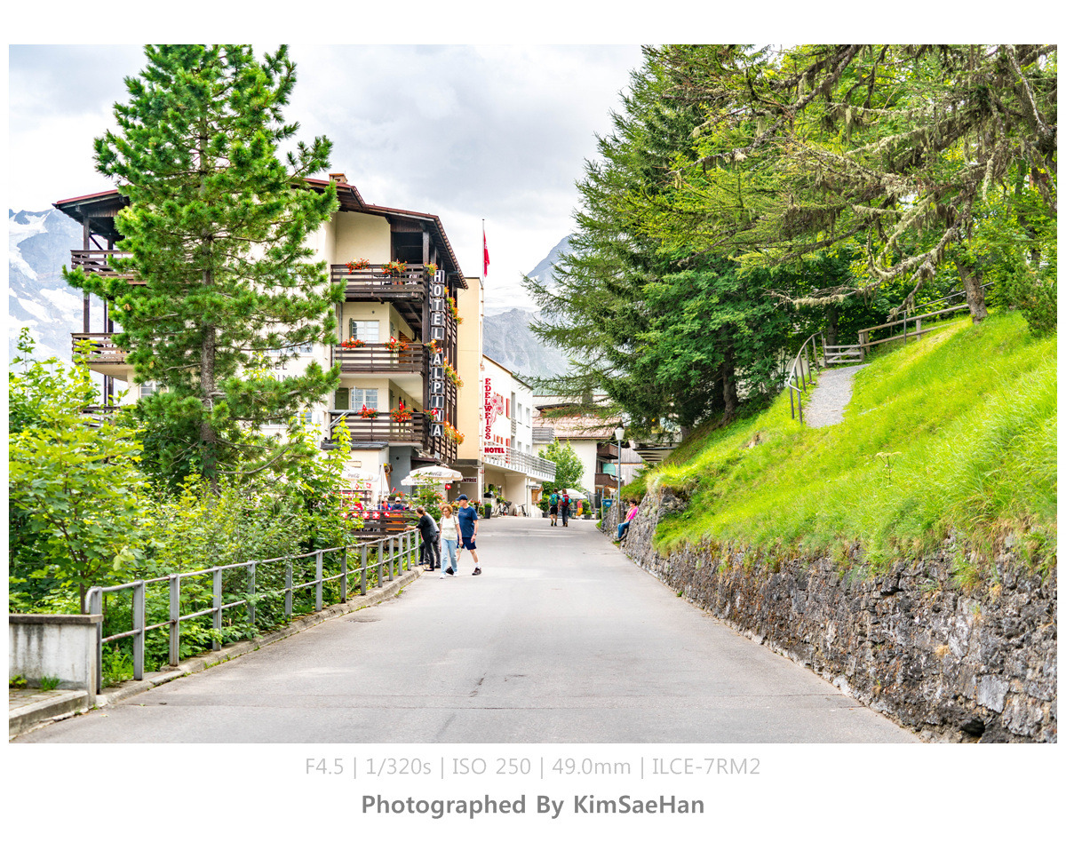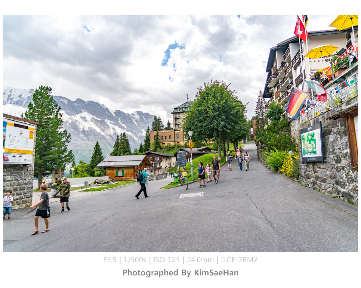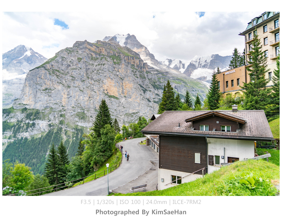 뮈렌 마을의 가장 큰 매력은 눈 앞에 보이는 융프라우라고 할까. 그린델발트가 눈 앞에 아이거 북벽을 두고 있다면, 뮈렌은 융프라우를 눈앞에 두고 있다. 1년 내내 만년설을 볼 수 있는 곳이다. 그 외에 크게 매력을 느낄 수는 없는 곳이었다. 한번 궁금해서 오기는 했지만, 만약 다시 스위스에 온다면 들리진 않을 것 같다. 와이프도 나와 같은 생각이었다. 그래도 왔으니 마을 전체를 한번 둘러보기로 했다.