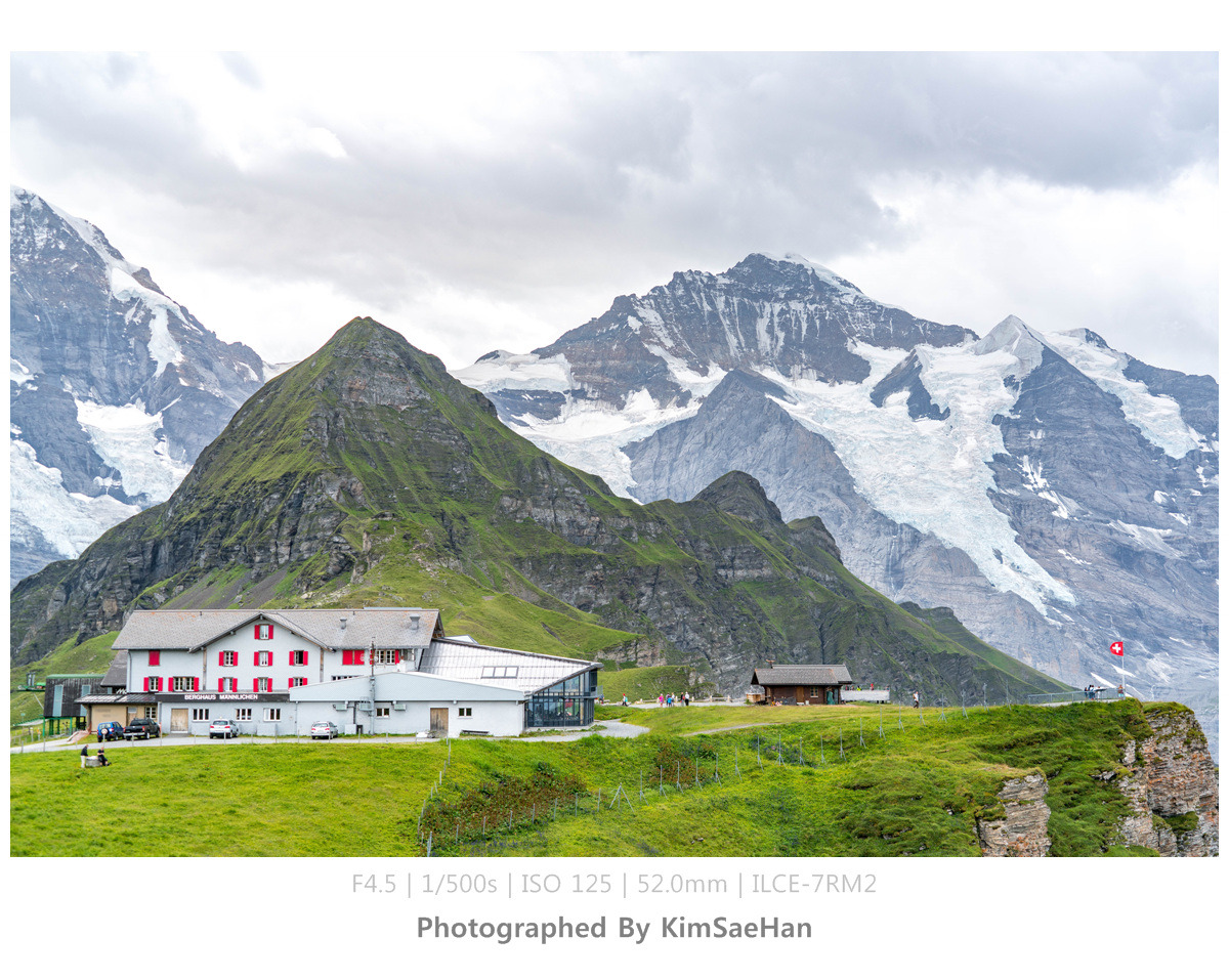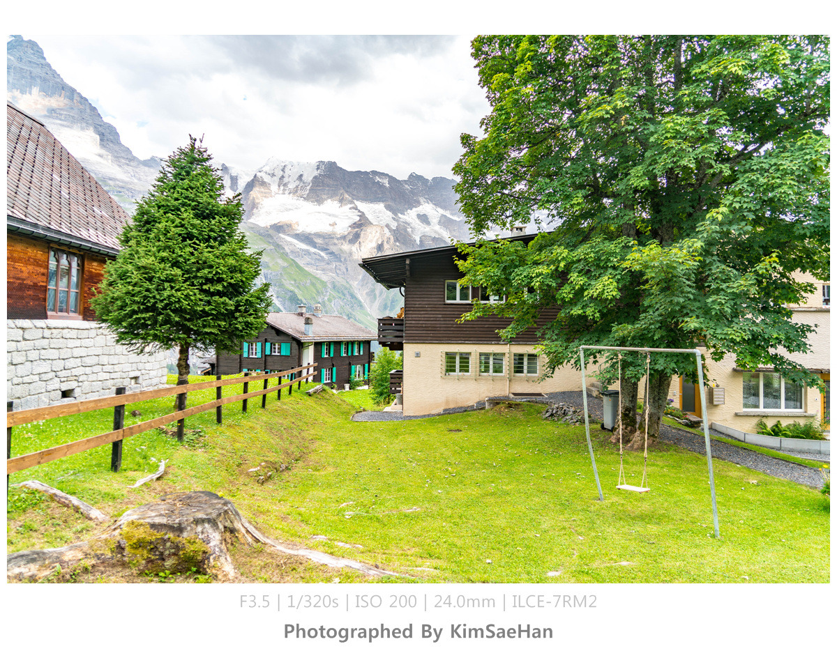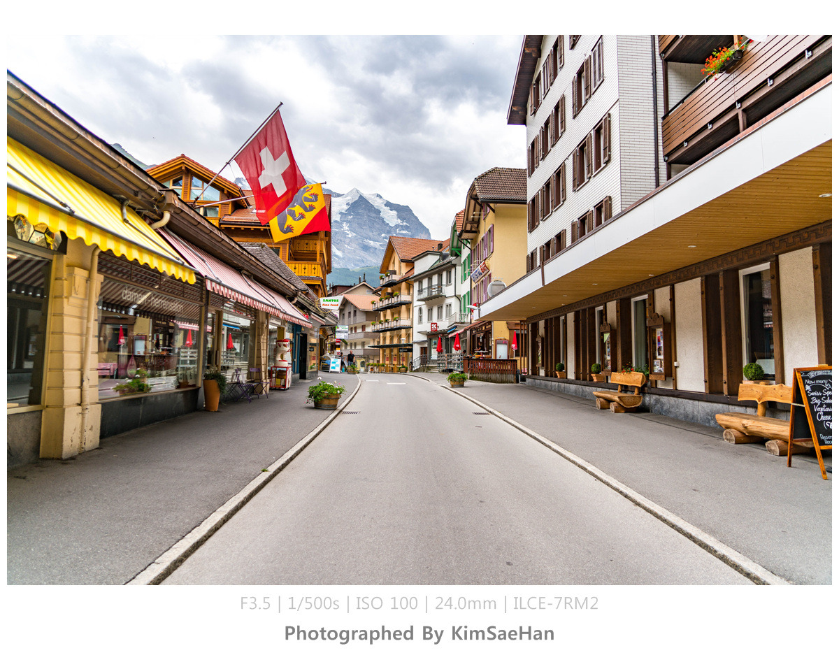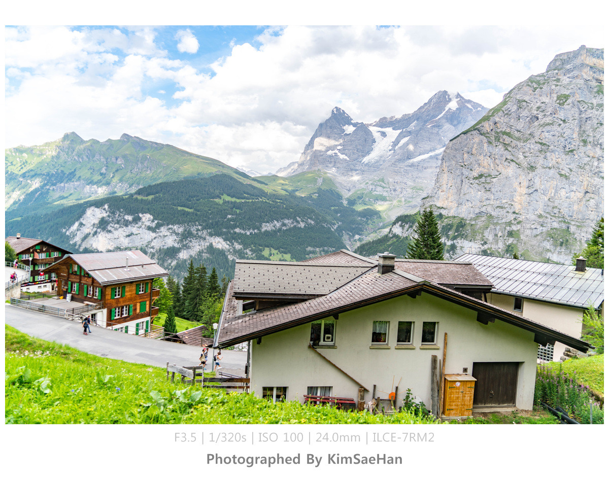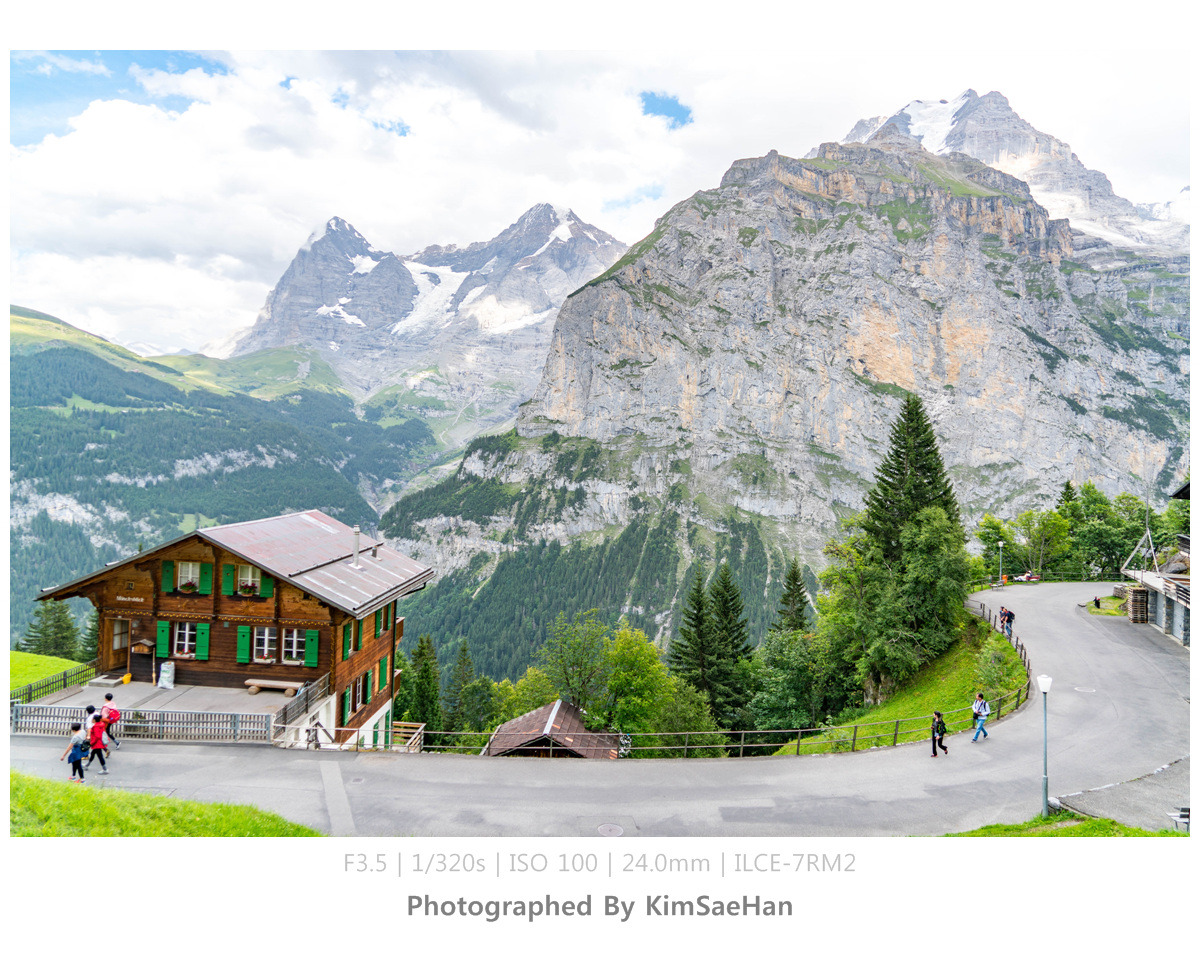 뮈렌 마을의 가장 큰 매력은 눈 앞에 보이는 융프라우라고 할까. 그린델발트가 눈 앞에 아이거 북벽을 두고 있다면, 뮈렌은 융프라우를 눈앞에 두고 있다. 1년 내내 만년설을 볼 수 있는 곳이다. 그 외에 크게 매력을 느낄 수는 없는 곳이었다. 한번 궁금해서 오기는 했지만, 만약 다시 스위스에 온다면 들리진 않을 것 같다. 와이프도 나와 같은 생각이었다. 그래도 왔으니 마을 전체를 한번 둘러보기로 했다.