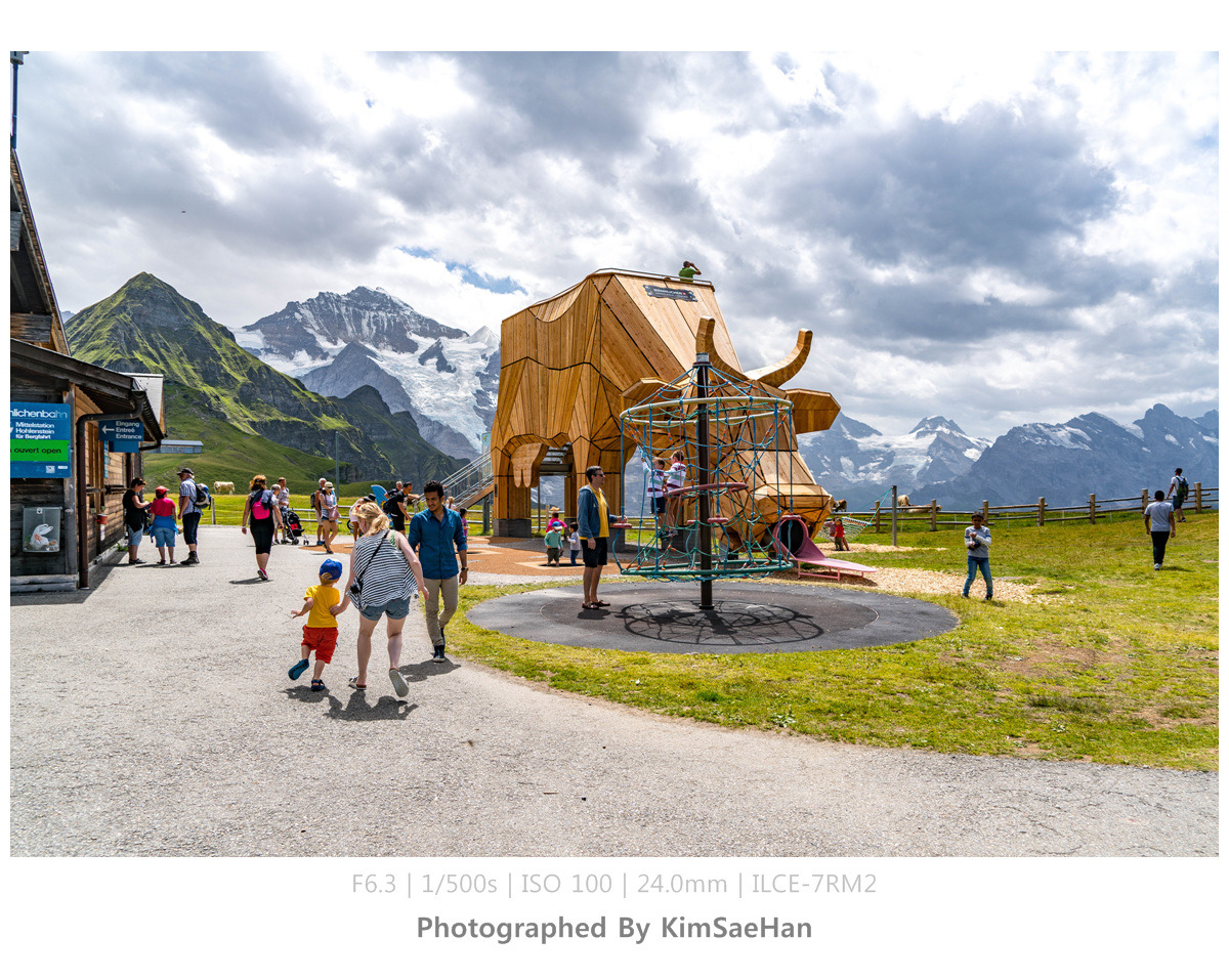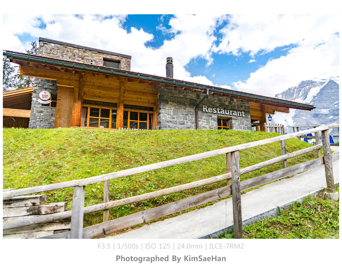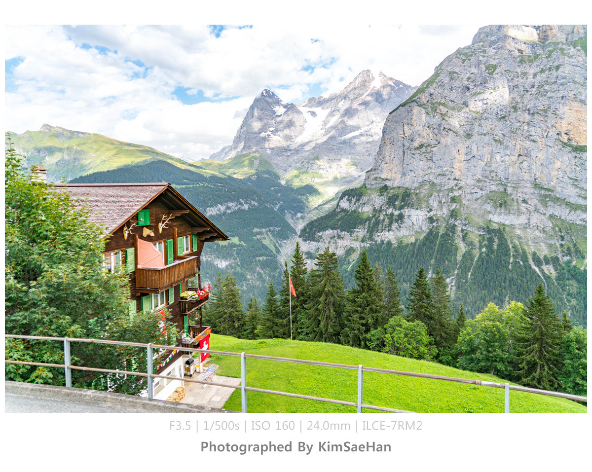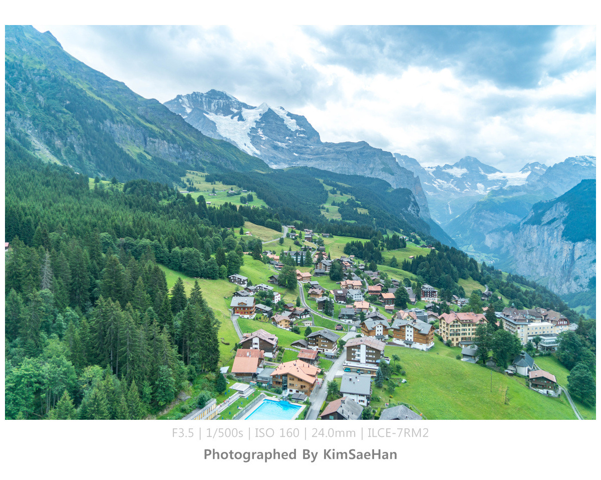 뮈렌 마을의 가장 큰 매력은 눈 앞에 보이는 융프라우라고 할까. 그린델발트가 눈 앞에 아이거 북벽을 두고 있다면, 뮈렌은 융프라우를 눈앞에 두고 있다. 1년 내내 만년설을 볼 수 있는 곳이다. 그 외에 크게 매력을 느낄 수는 없는 곳이었다. 한번 궁금해서 오기는 했지만, 만약 다시 스위스에 온다면 들리진 않을 것 같다. 와이프도 나와 같은 생각이었다. 그래도 왔으니 마을 전체를 한번 둘러보기로 했다.