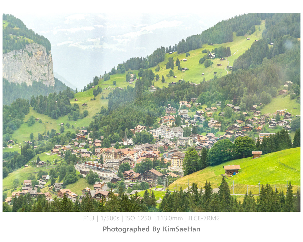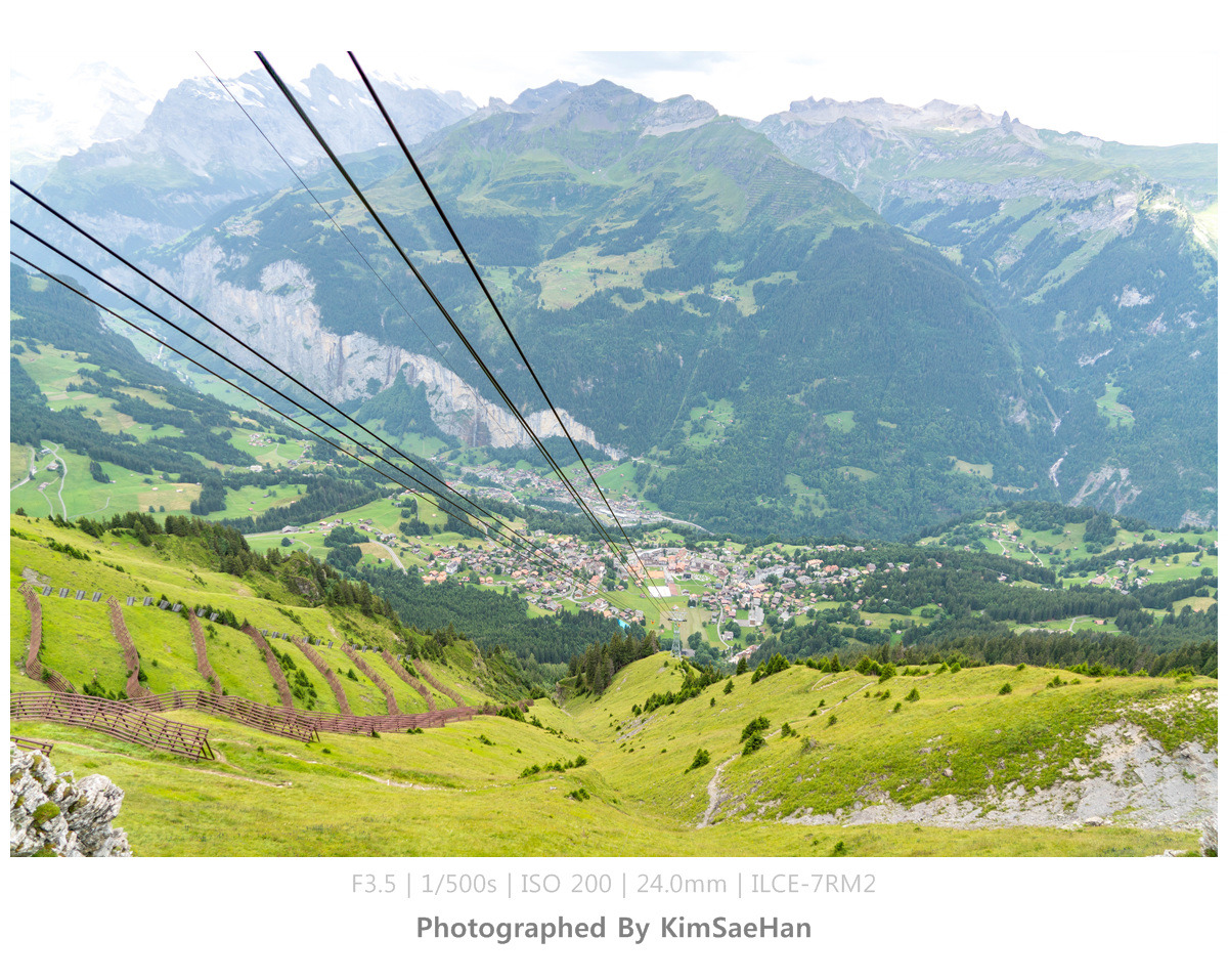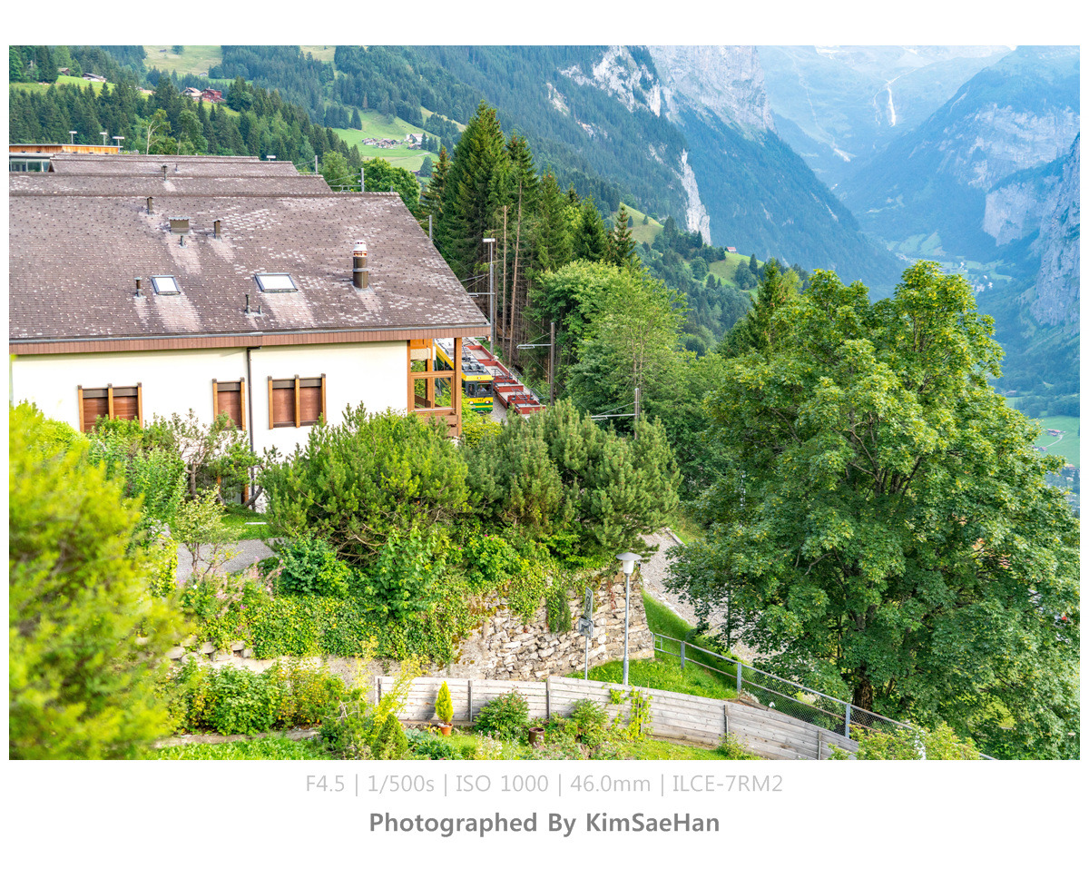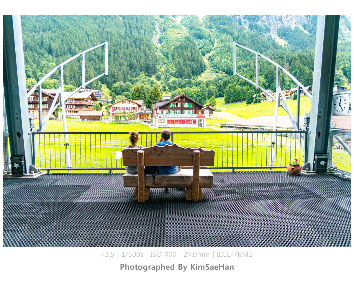 클라이네샤이덱에 도착해서 다시 라우터브루넨 방향의 기차를 탔다. 멋진 풍경을 바라보면서, 트래킹 하면서 지친 다리도 풀어주었다. 벵엔에 내려서 숙소로 들어갈까 하다가, 청정마을이라고 하는 뮈렌에 한번 가보기로 했다. 뮈렌으로 가기 위해서는 라우터브루넨에서 케이블카를 타고 'Grütschalp'에 내려서 기차를 타고 이동해야 한다. 스위스 여행하기 전부터 와이프가 한번 가보고 싶은 곳이라고 해서 시간도 남아서 한번 가기로 했다.