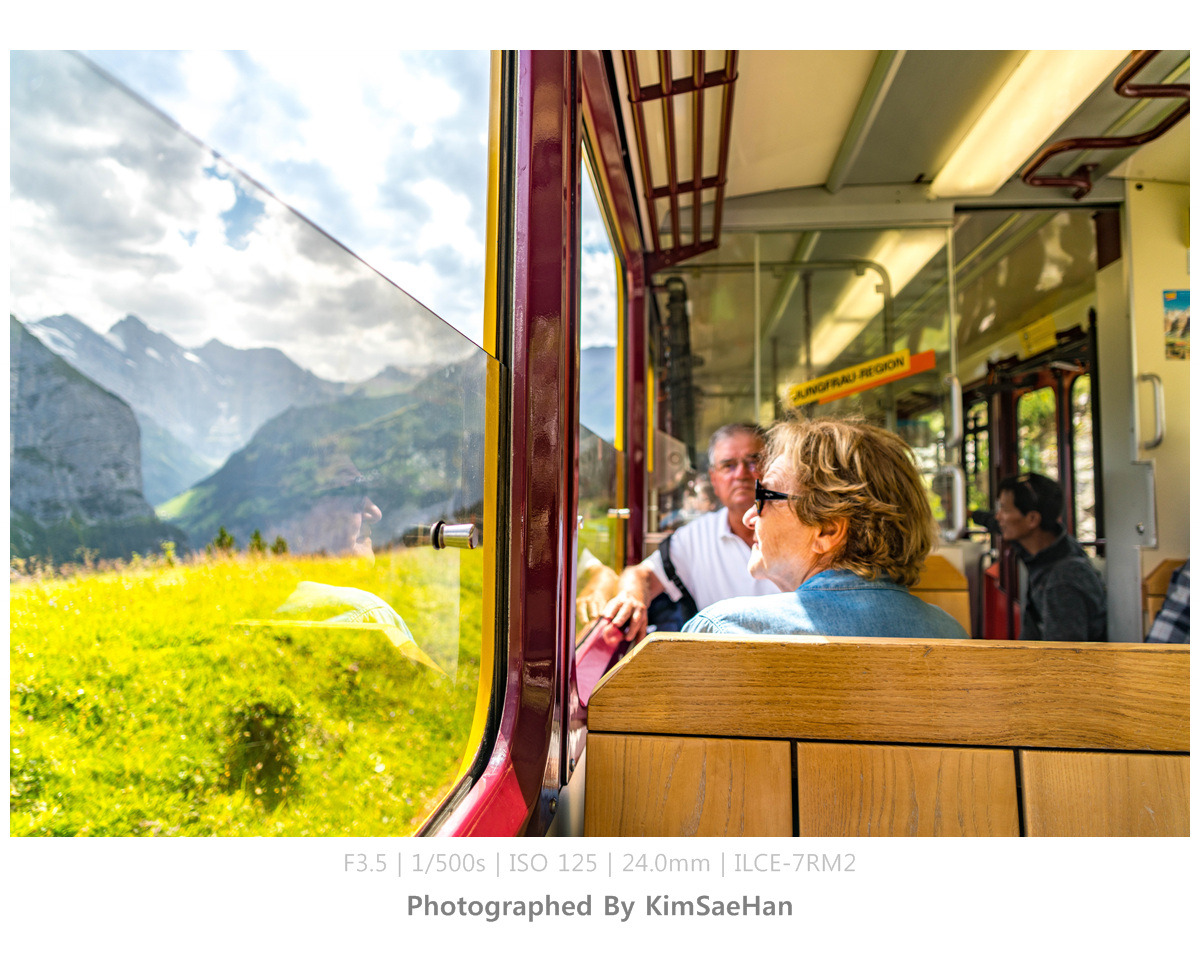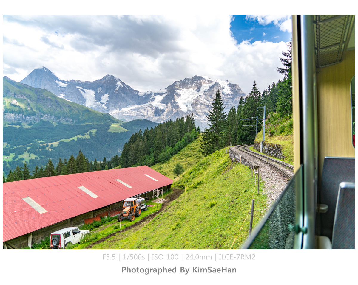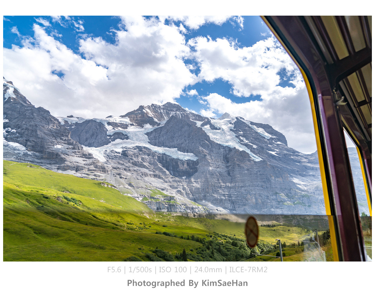 사진을 찍으며 놀다 보니 클라이네샤이덱으로 가는 기차가 도착해서 멋진 풍경을 바라보고 이동했다. 몇 번을 봤던 풍경이라 그런지, 카메라는 꺼내지도 않고 그냥 바라만 보며 이동했다. 난 여행을 다니면서 핸드폰은 가방에 넣어도 카메라는 항상 손에 들고 다닌다. 조금이라도 멋져 보이거나 흥미가 가면 일단 찍고 본다. 놓치면 다시는 못 볼 풍경이기 때문이다. 그래서, 하다못해 작은 서브 카메라도 들고 다니는데 이번에는 한 지역에 머물면서 같은 곳을 자주 이동하다 보니 카메라를 꺼내도 결국 똑같은 사진들만 여러 장 찍을 것 같아서 아예 눈으로 보기로 한 것이다.